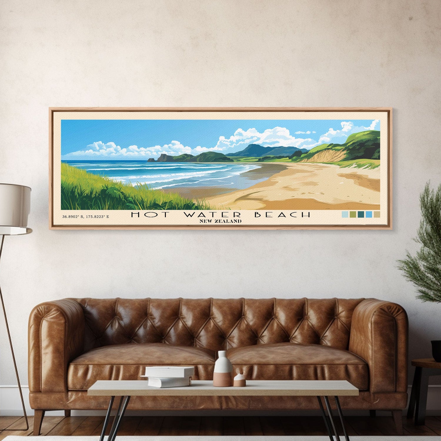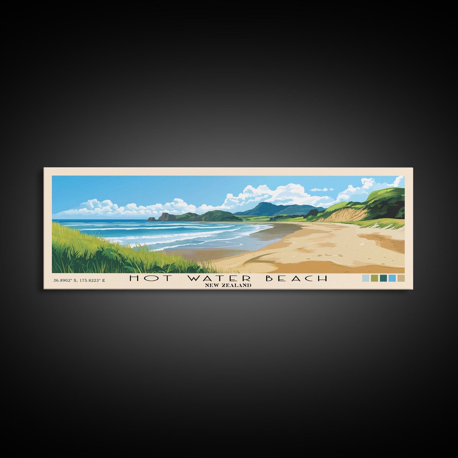 Hot Water Beach, New Zealand Panoramic Print, Vacation Gift, New Zealand Wall Art, Beach Painting, Beach Decor, Beach Or Lakehouse Art