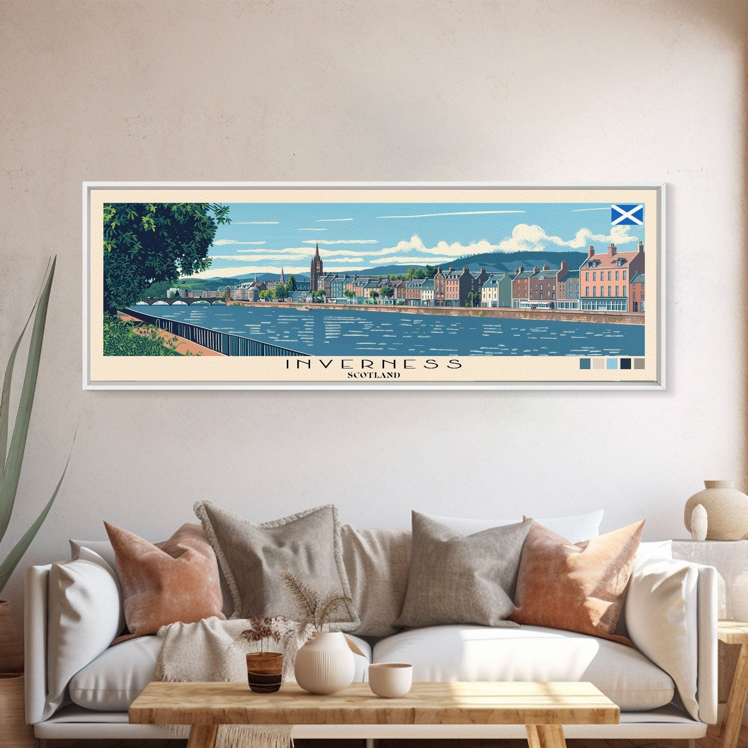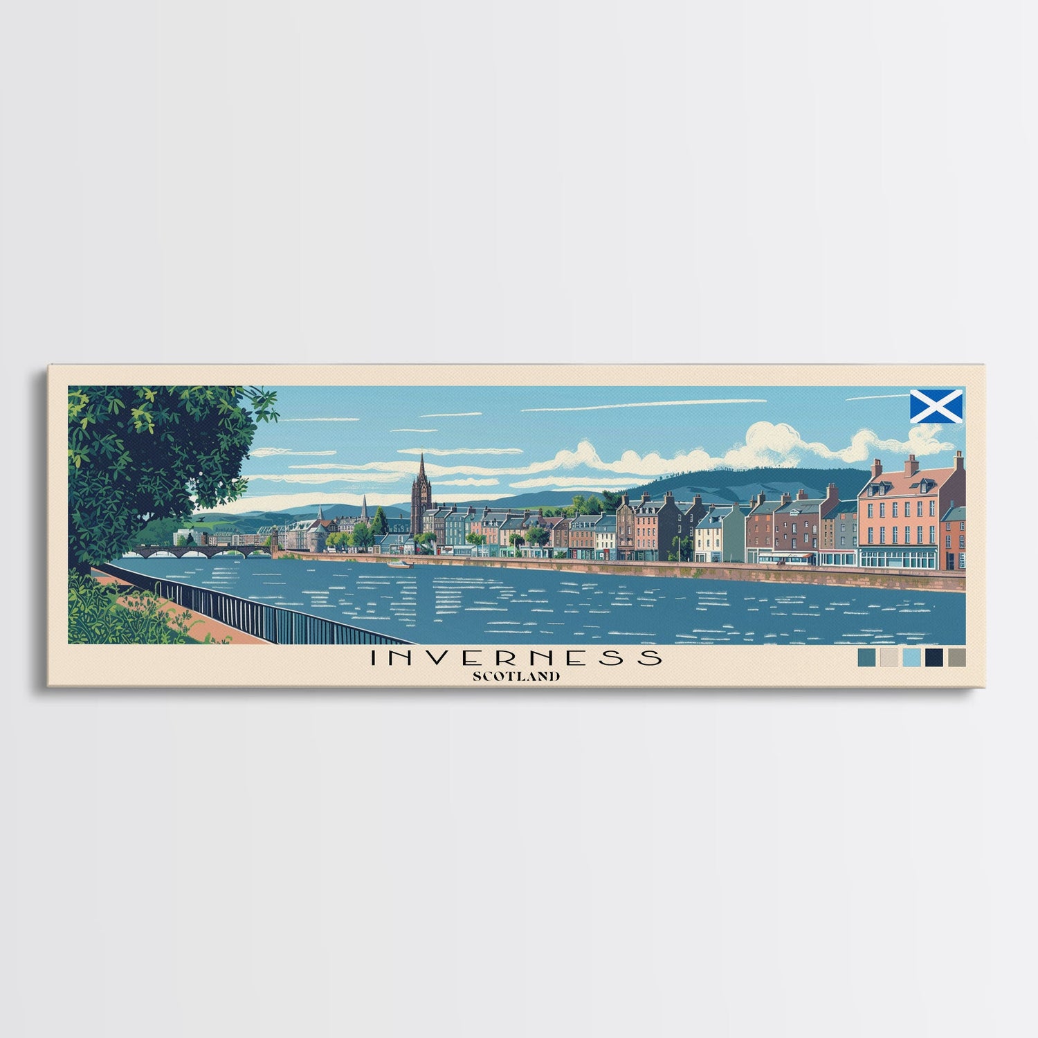 Inverness, Scotland Panoramic Canvas Print, Inverness, Scotland Painting, Scotland Art, Inverness Travel Poster, Travel Art, Guest Room Painting