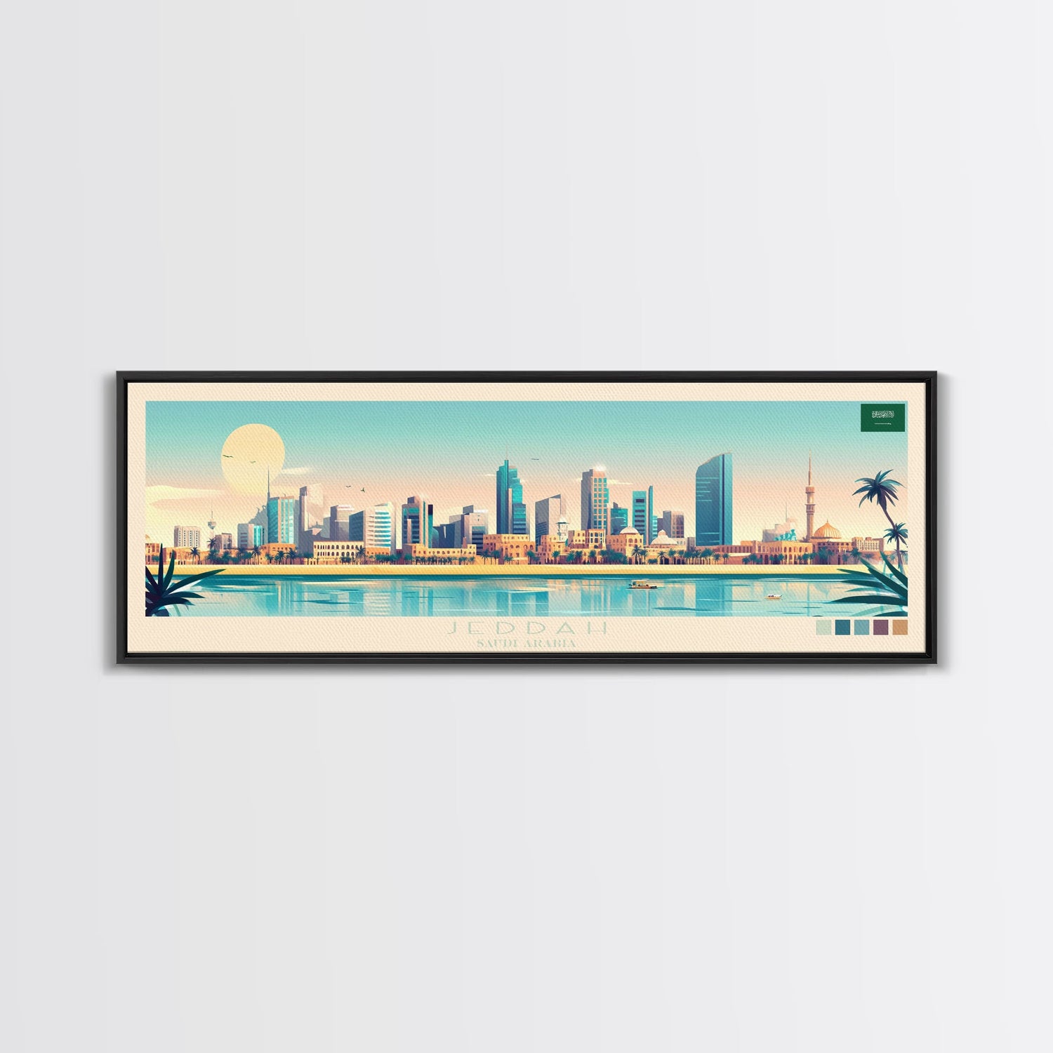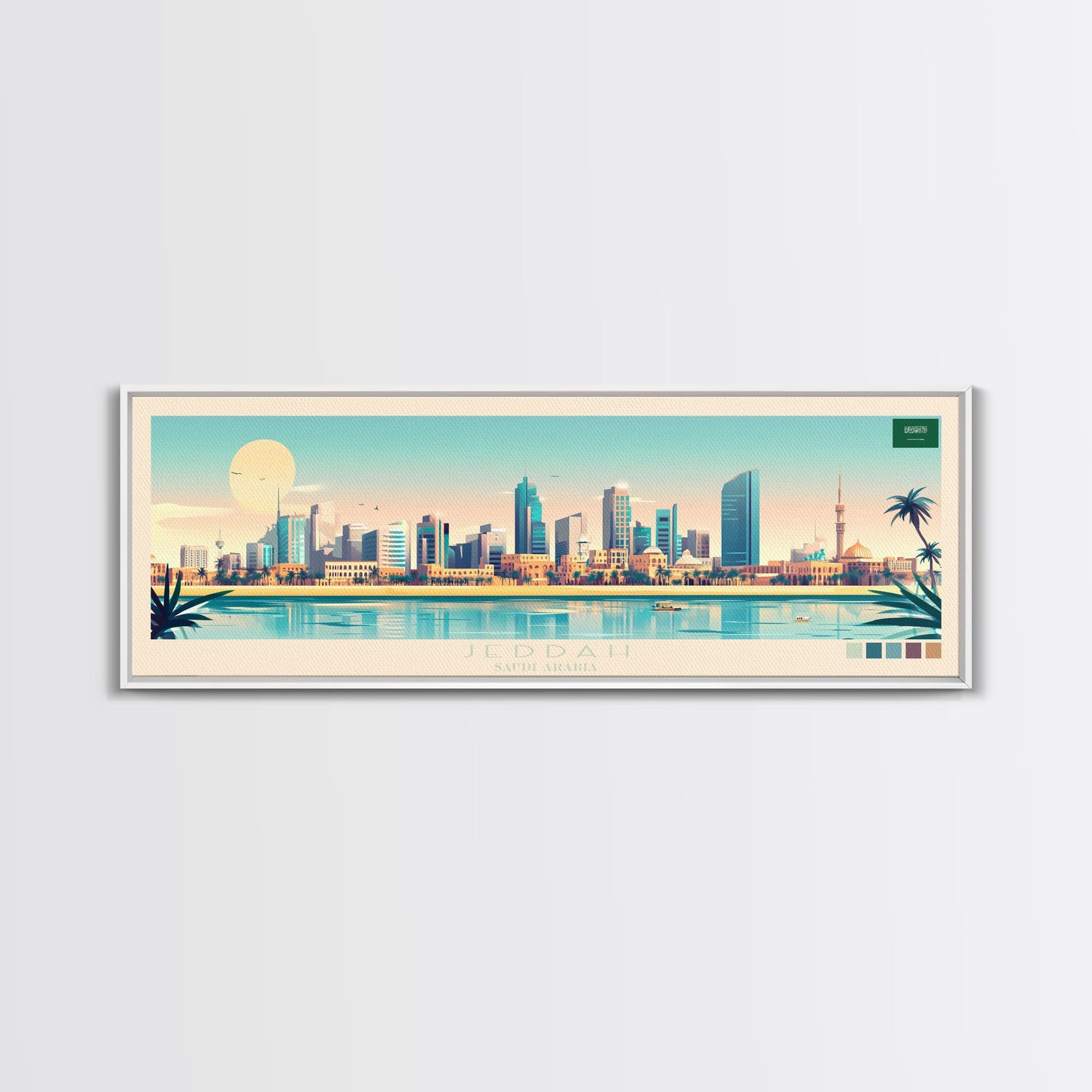 Jeddah, Saudi Arabia Panoramic Travel Poster Canvas Print, Jeddah, Saudi Arabia Painting, Saudi Arabia Art, Jeddah Panoramic Travel Art, Travel Painting