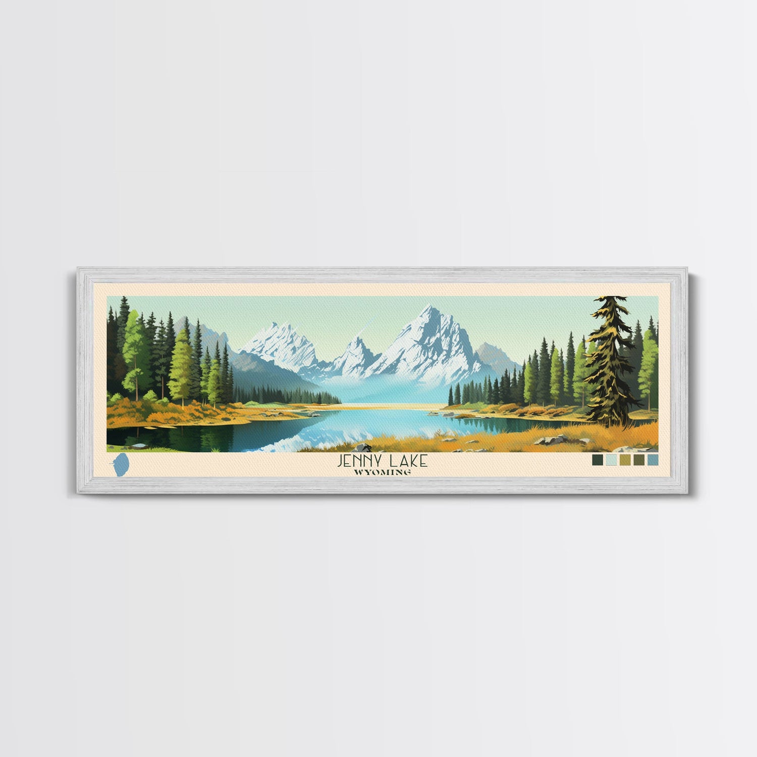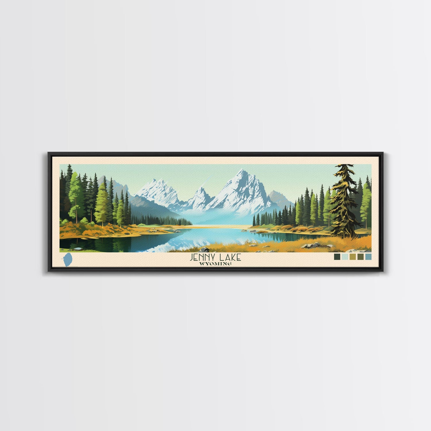 Jenny Lake Wyoming Framed Canvas Print, Panoramic Wall Art, Midcentury Modern, Pop Art, Living Room Decor, Travel Poster, Bedroom Art