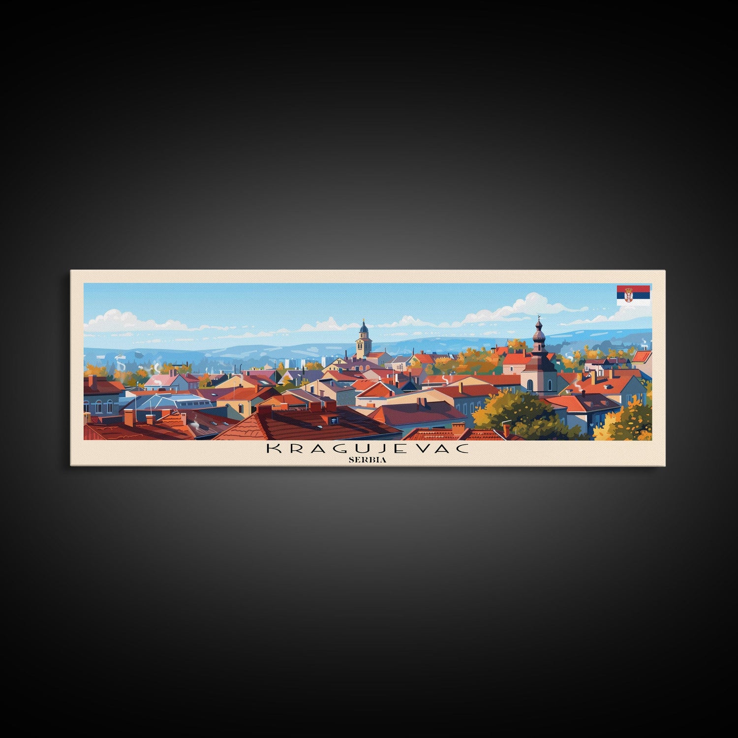 Kragujevac Serbia Travel Print Wall Art, Panoramic City Art, Travel Art, Wall Decor, Vacation Gift, Framed Canvas Print Or Metal Art - 10x30 Inches / Gallery Wrap Canvas - Ready To Hang is backordered and will ship as soon as it is back in stock.
