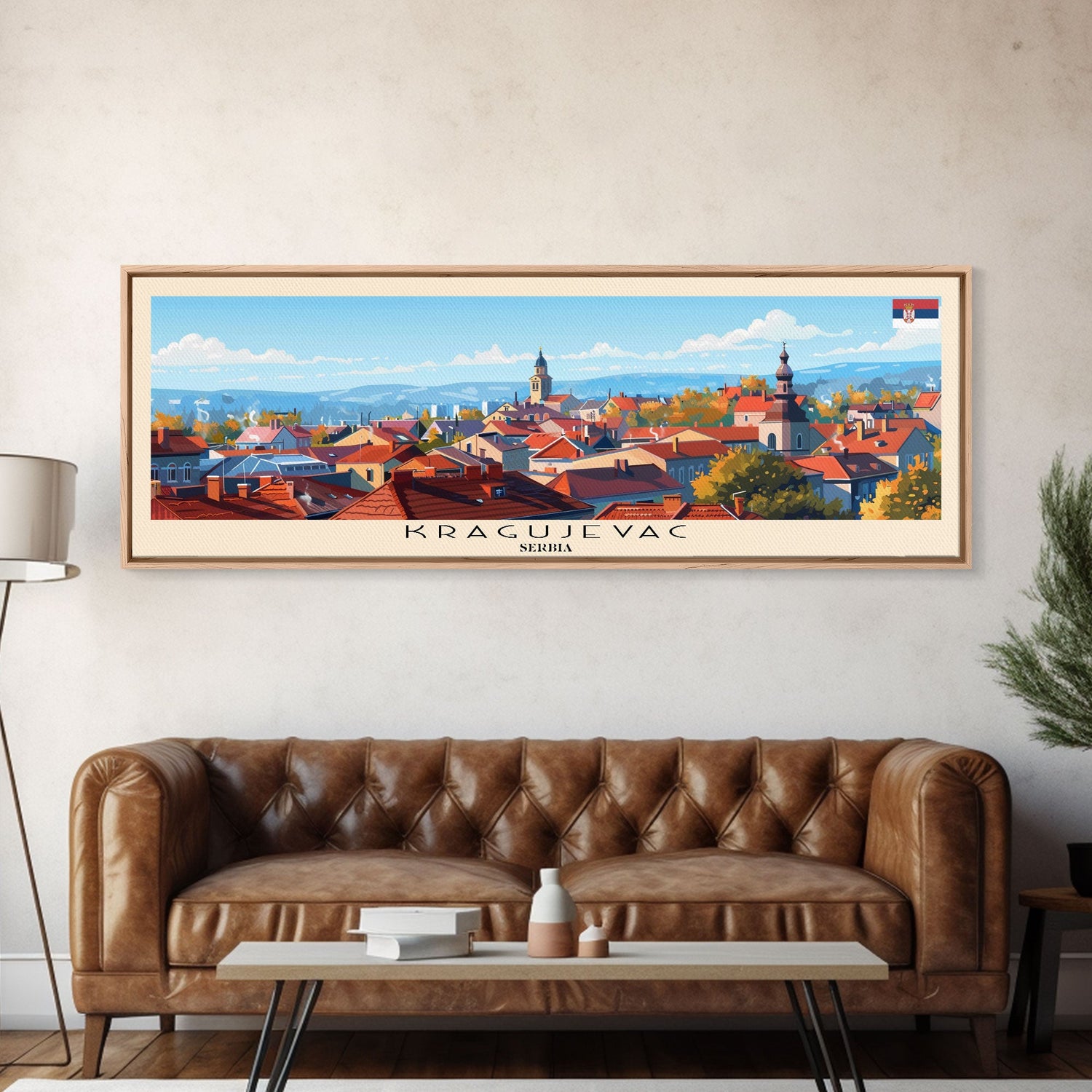 Kragujevac Serbia Travel Print Wall Art, Panoramic City Art, Travel Art, Wall Decor, Vacation Gift, Framed Canvas Print Or Metal Art
