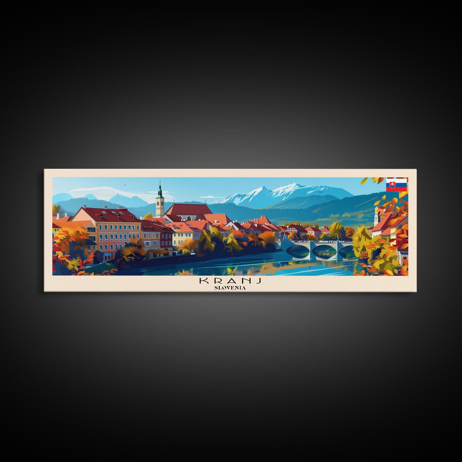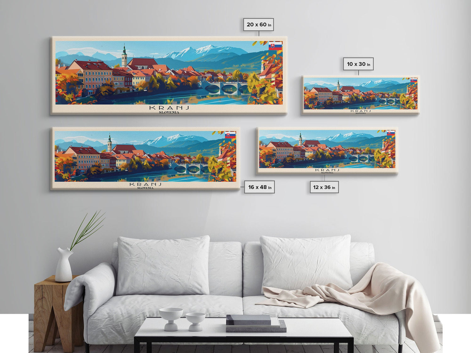 Kranj Slovenia Wall Art, Panoramic Travel Poster, Panoramic Framed Canvas Print, City Wall Art, Wall Hanging Home Decor, Travel Art