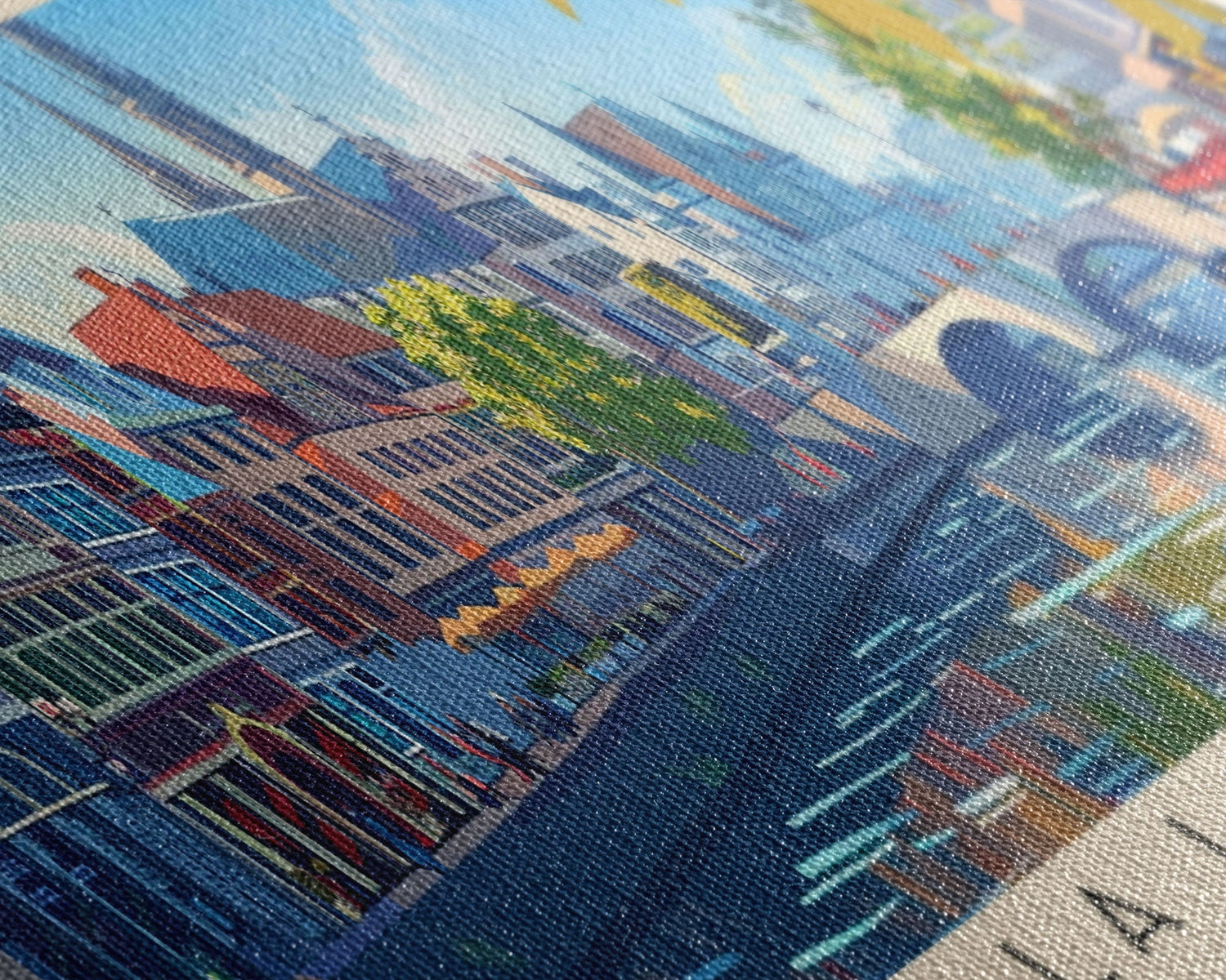 Hello and thank you for taking the time to view our modern high quality giclée artwork! We offer both posters and stretched canvas prints. Our posters are printed on Ultra Matte 60 lb / 230 GSM high quality photo paper, with a thickness of 10 mil. Our canvases are printed on museum grade 350 GSM canvas material with ECO friendly archival grade ink, then hand stretched and stapled over premium, FSC certified and shrink resistant frames. Designed and built to last a lifetime.