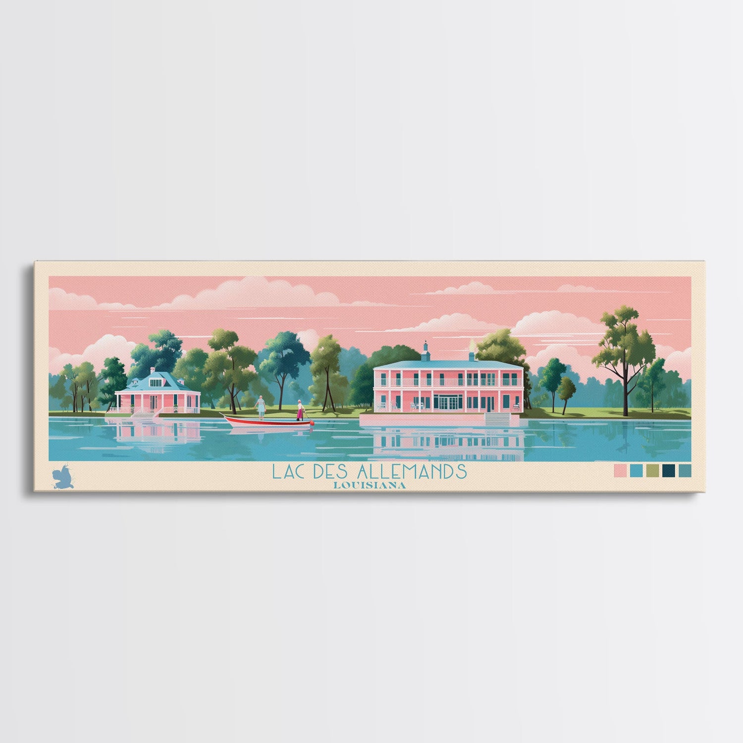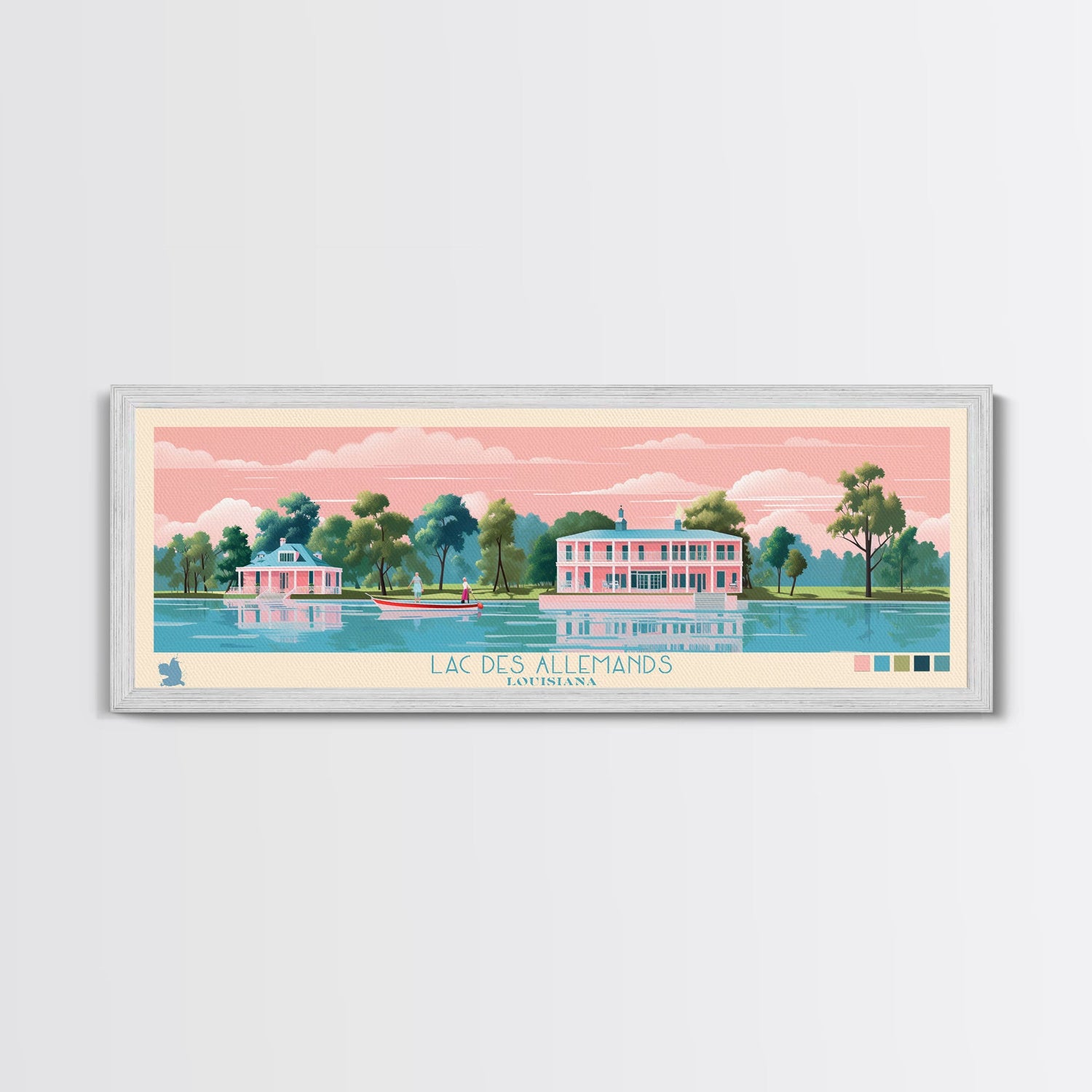 Lac des Allemands Louisiana Framed Canvas Print, Panoramic Wall Art, Midcentury Modern, Pop Art, Bedroom Art, Travel Poster, Living Room Decor - 10x30 Inches / Gallery Wrap Canvas - Ready To Hang is backordered and will ship as soon as it is back in stock.