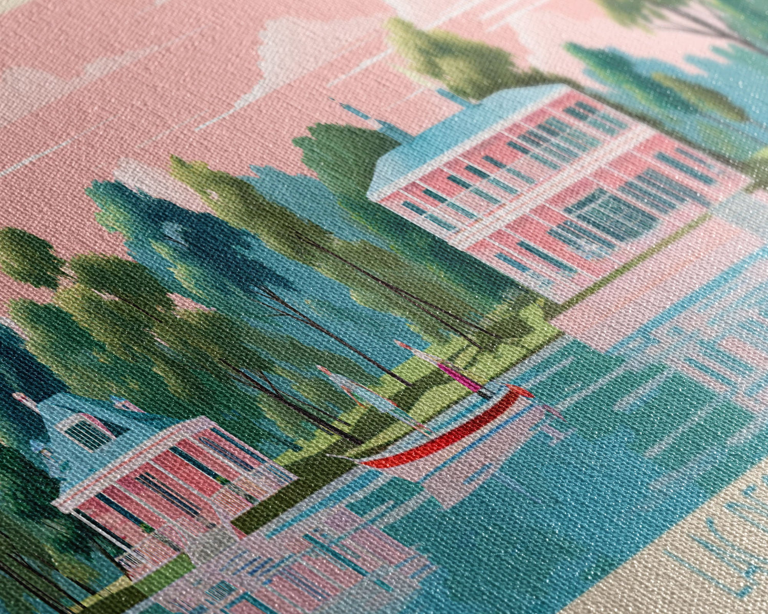 Lac des Allemands Louisiana Framed Canvas Print, Panoramic Wall Art, Midcentury Modern, Pop Art, Bedroom Art, Travel Poster, Living Room Decor