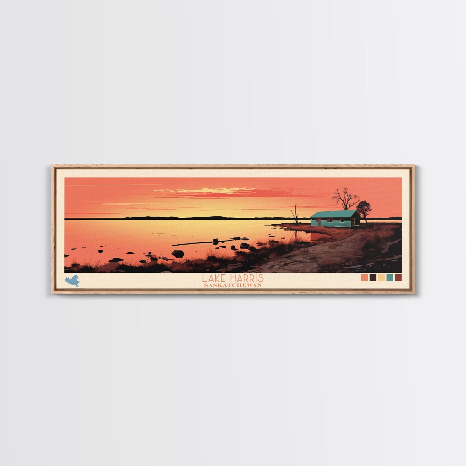 Lake Harris Saskatchewan Framed Canvas Print, Panoramic Wall Art, Midcentury Modern, Pop Art, Bedroom Art, Travel Poster, Living Room Decor