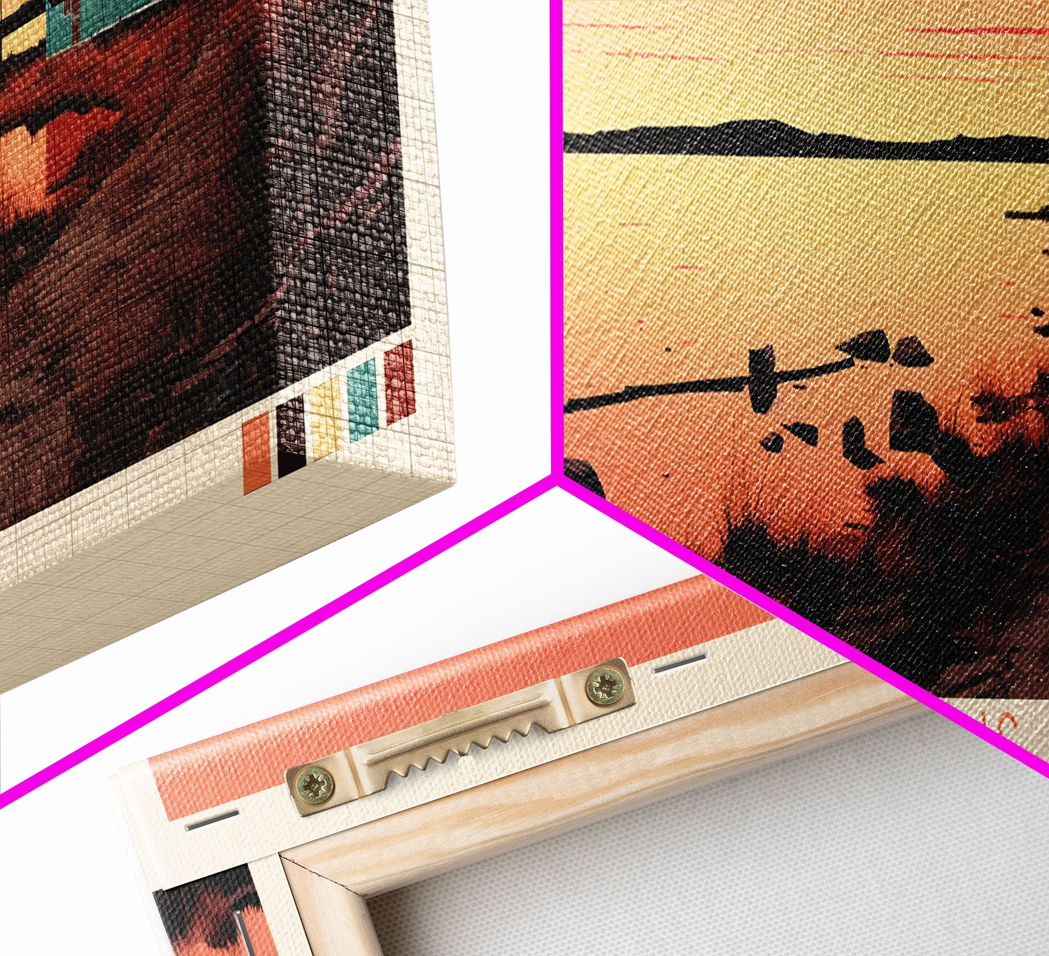 Hello and thank you for taking the time to view our modern high quality giclée artwork! We offer both posters and stretched canvas prints. Our posters are printed on Ultra Matte 60 lb / 230 GSM high quality photo paper, with a thickness of 10 mil. Our canvases are printed on museum grade 350 GSM canvas material with ECO friendly archival grade ink, then hand stretched and stapled over premium, FSC certified and shrink resistant frames. Designed and built to last a lifetime.