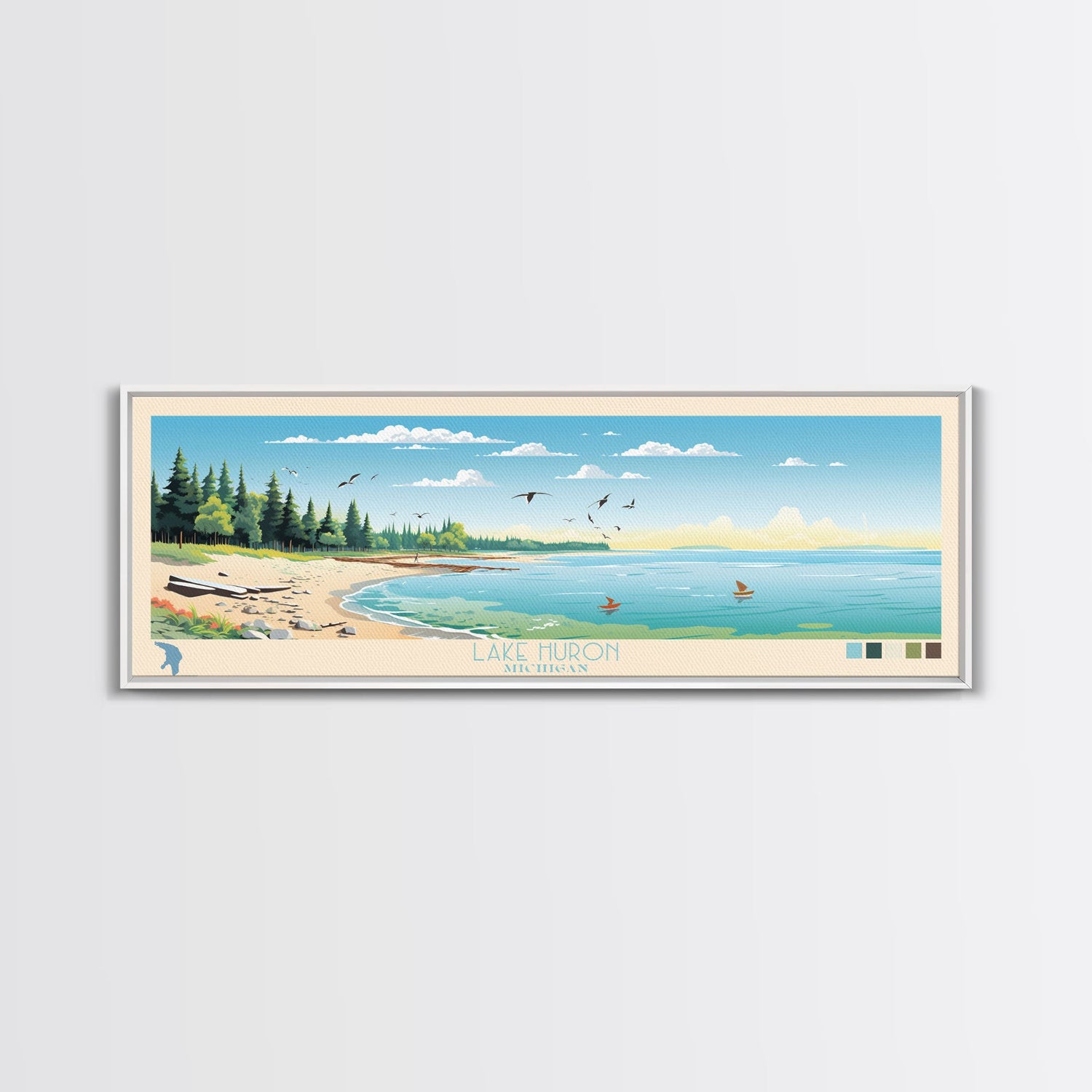 Lake Huron Michigan Framed Canvas Print, Panoramic Wall Art, Midcentury Modern, Pop Art, Living Room Decor, Travel Poster, Bedroom Art