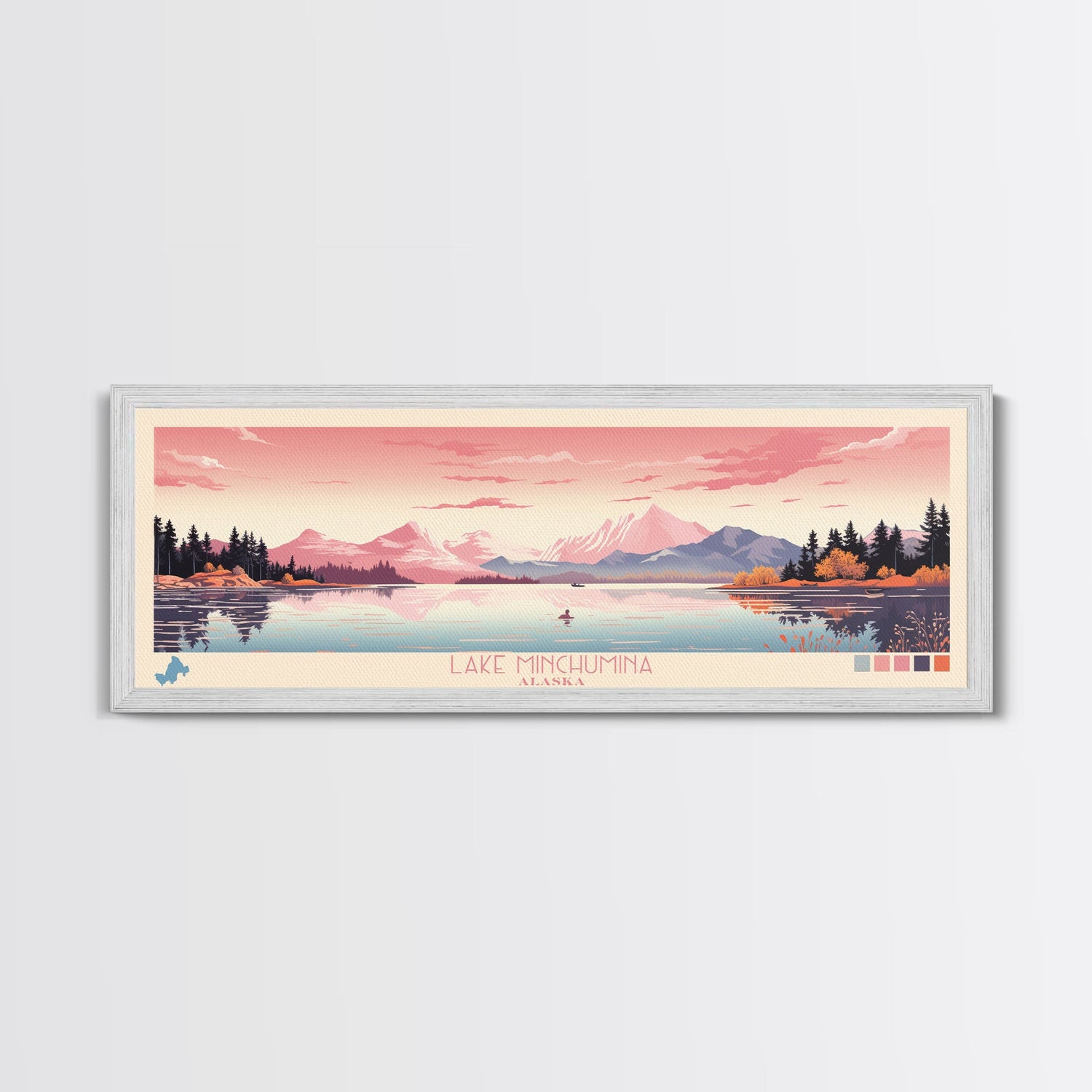 Lake Minchumina Alaska Framed Canvas Print, Panoramic Wall Art, Midcentury Modern, Pop Art, Bedroom Art, Travel Poster, Lake House Decor