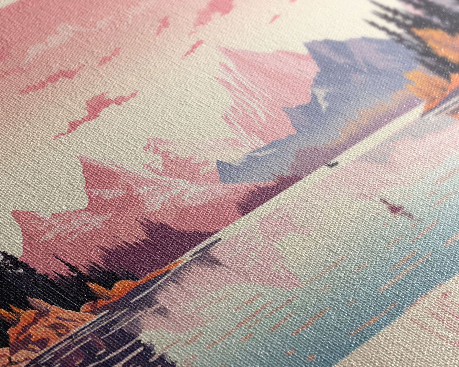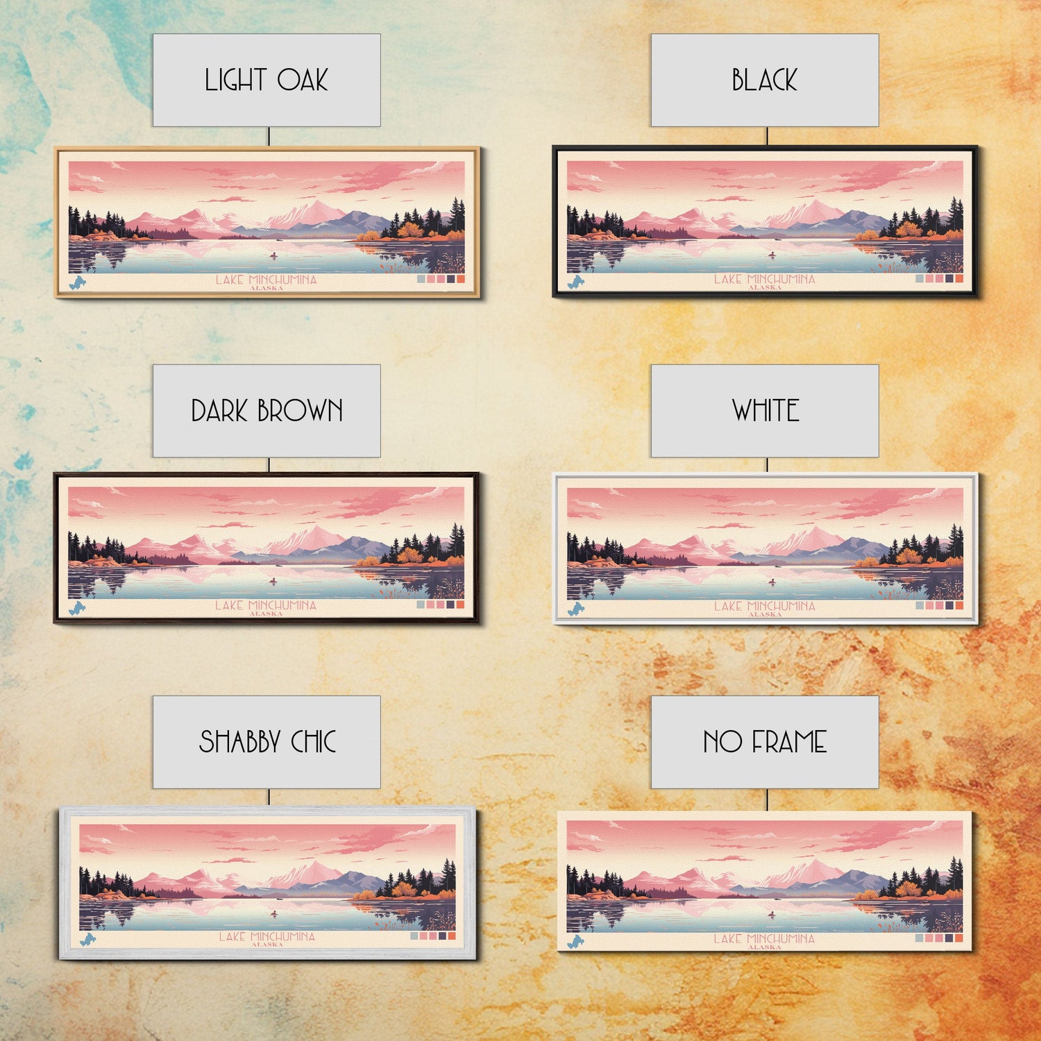Lake Minchumina Alaska Framed Canvas Print, Panoramic Wall Art, Midcentury Modern, Pop Art, Bedroom Art, Travel Poster, Lake House Decor - 10x30 Inches / Gallery Wrap Canvas - Ready To Hang is backordered and will ship as soon as it is back in stock.