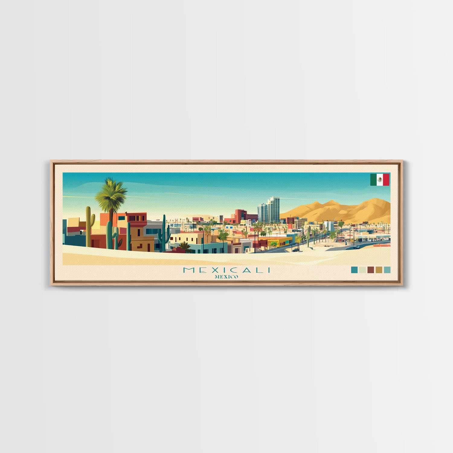 Mexicali, Mexico Panoramic Travel Poster Canvas Print, Mexicali, Mexico Painting, Mexico Art, Mexicali Panoramic Travel Art, Travel Painting