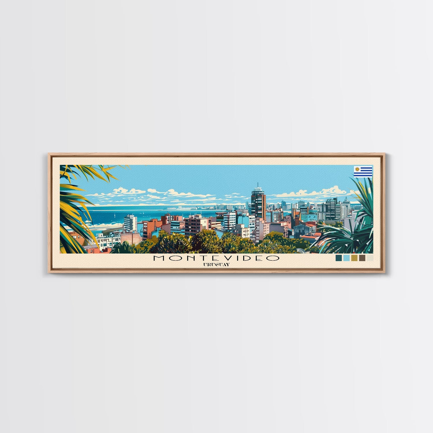 Montevideo, Uruguay Panoramic Canvas Print, Montevideo, Uruguay Painting, Uruguay Art, Montevideo Travel Poster, Travel Art, Guest Room Painting