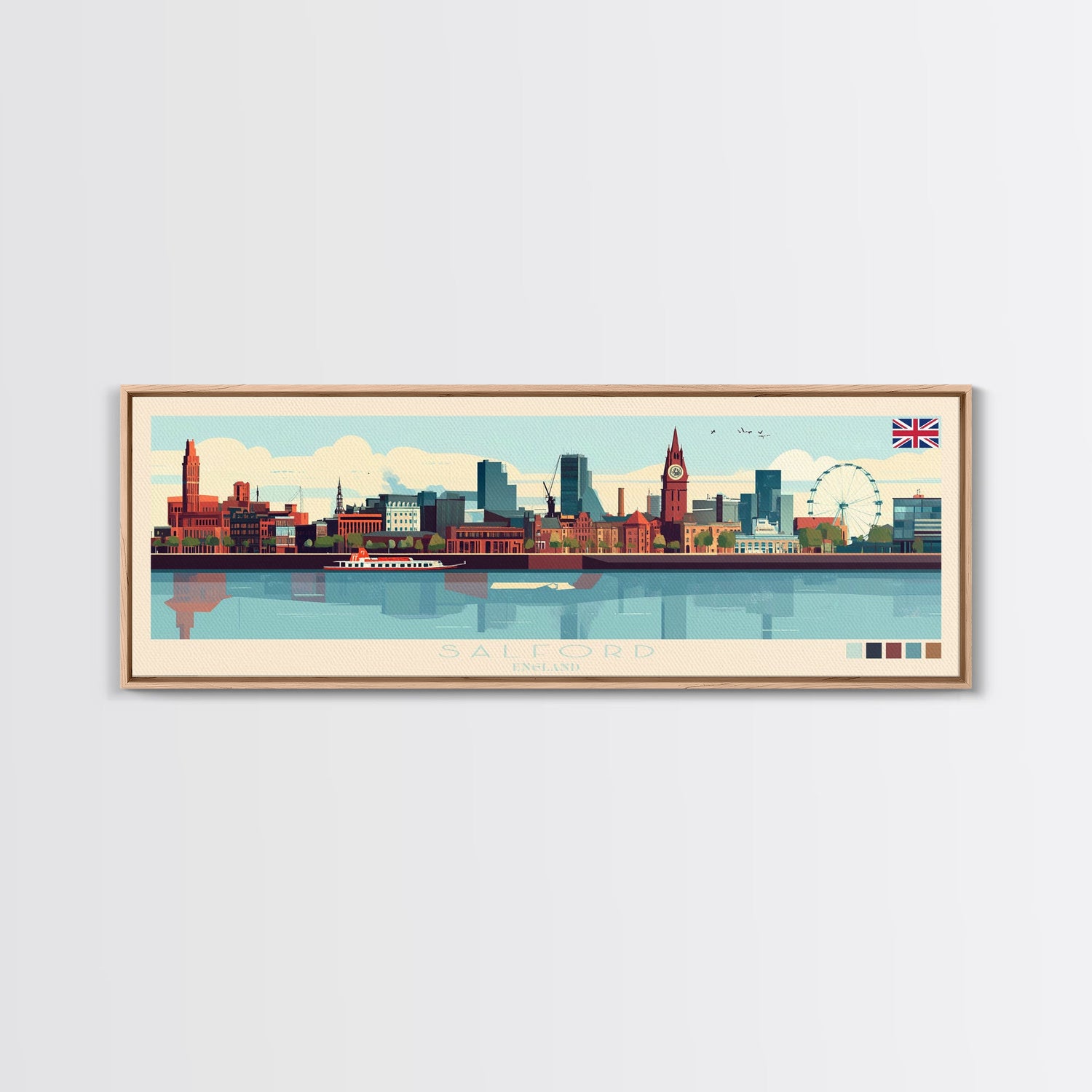 Salford, England Panoramic Travel Poster Canvas Print, Salford, England Painting, England Art, Salford Travel Art, Guest Room Painting