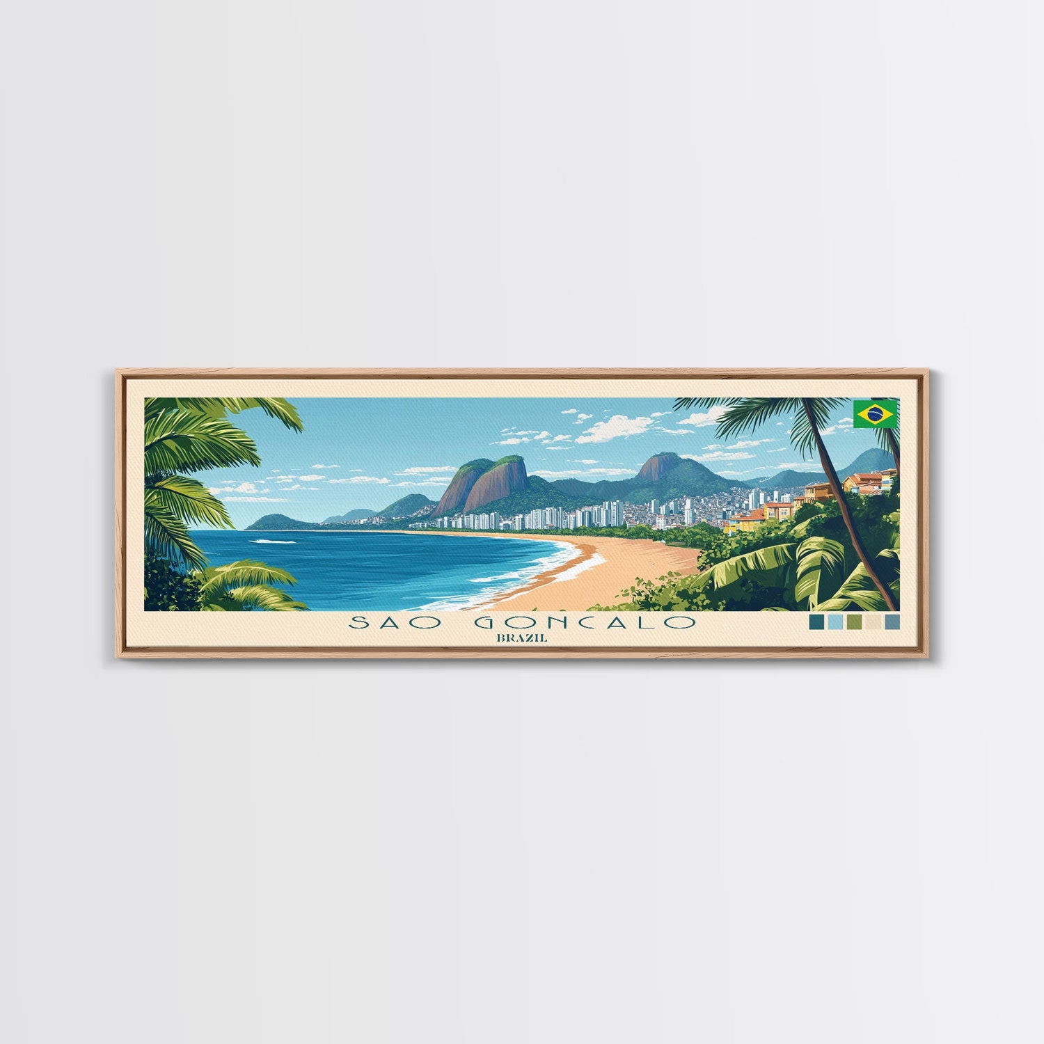 Sao Goncalo, Brazil Panoramic Travel Poster Canvas Print, Sao Goncalo, Brazil Painting, Brazil Art, Sao Goncalo Travel Art, Guest Room Painting