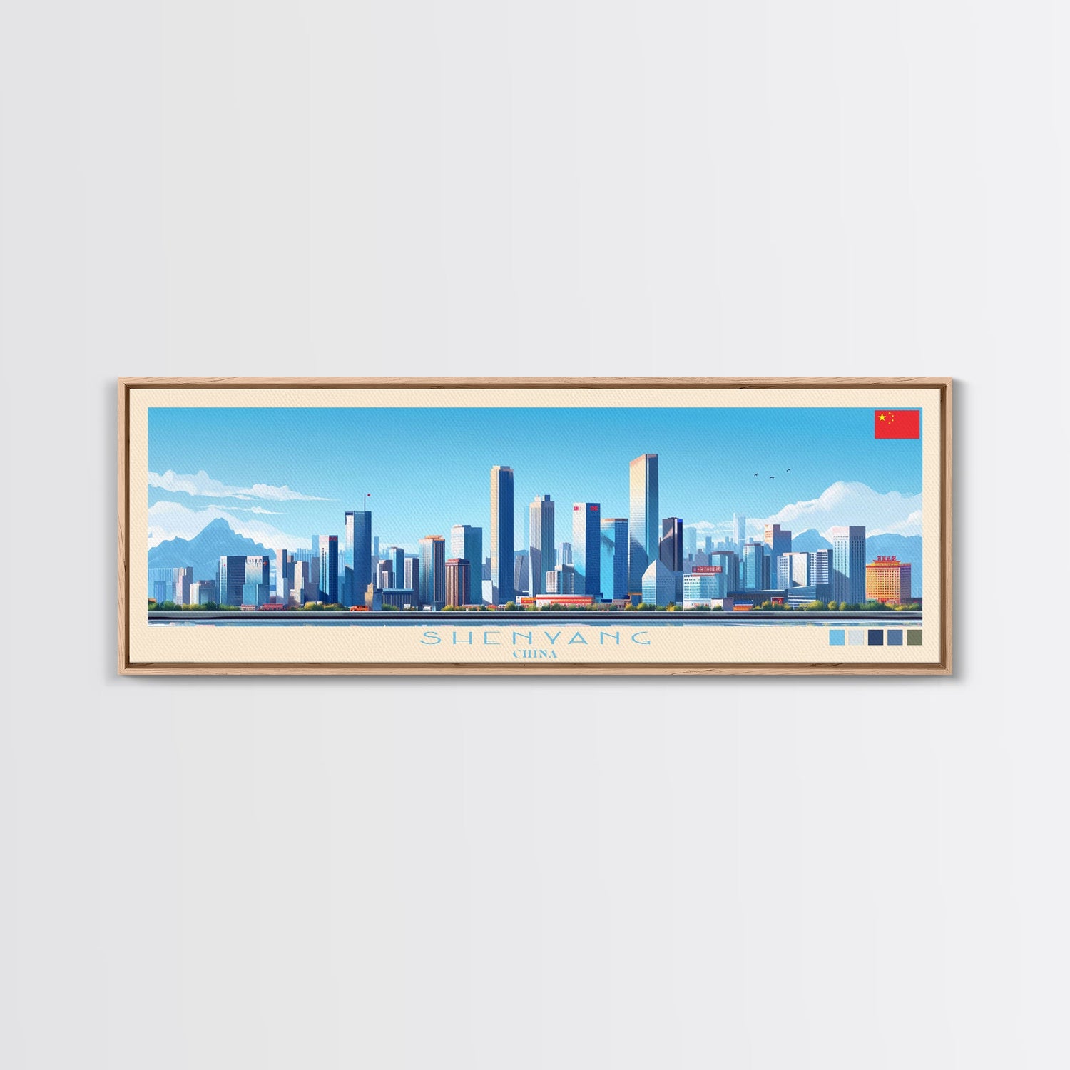 Shenyang, China Panoramic Travel Poster Canvas Print, Shenyang, China Painting, China Art, Shenyang Travel Art, Guest Room Painting