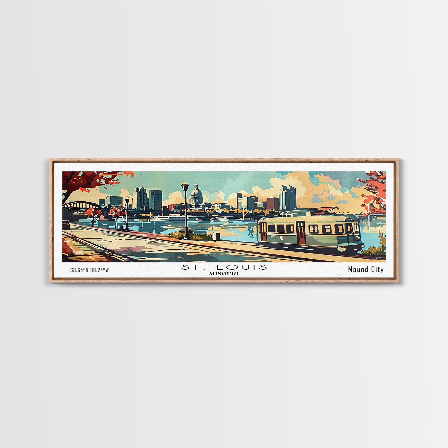 St. Louis Missouri Panoramic Painting, Mid Century Modern Framed Canvas Print, Retro Pop Art Travel Poster, Living Room Wall Art and Office Decor