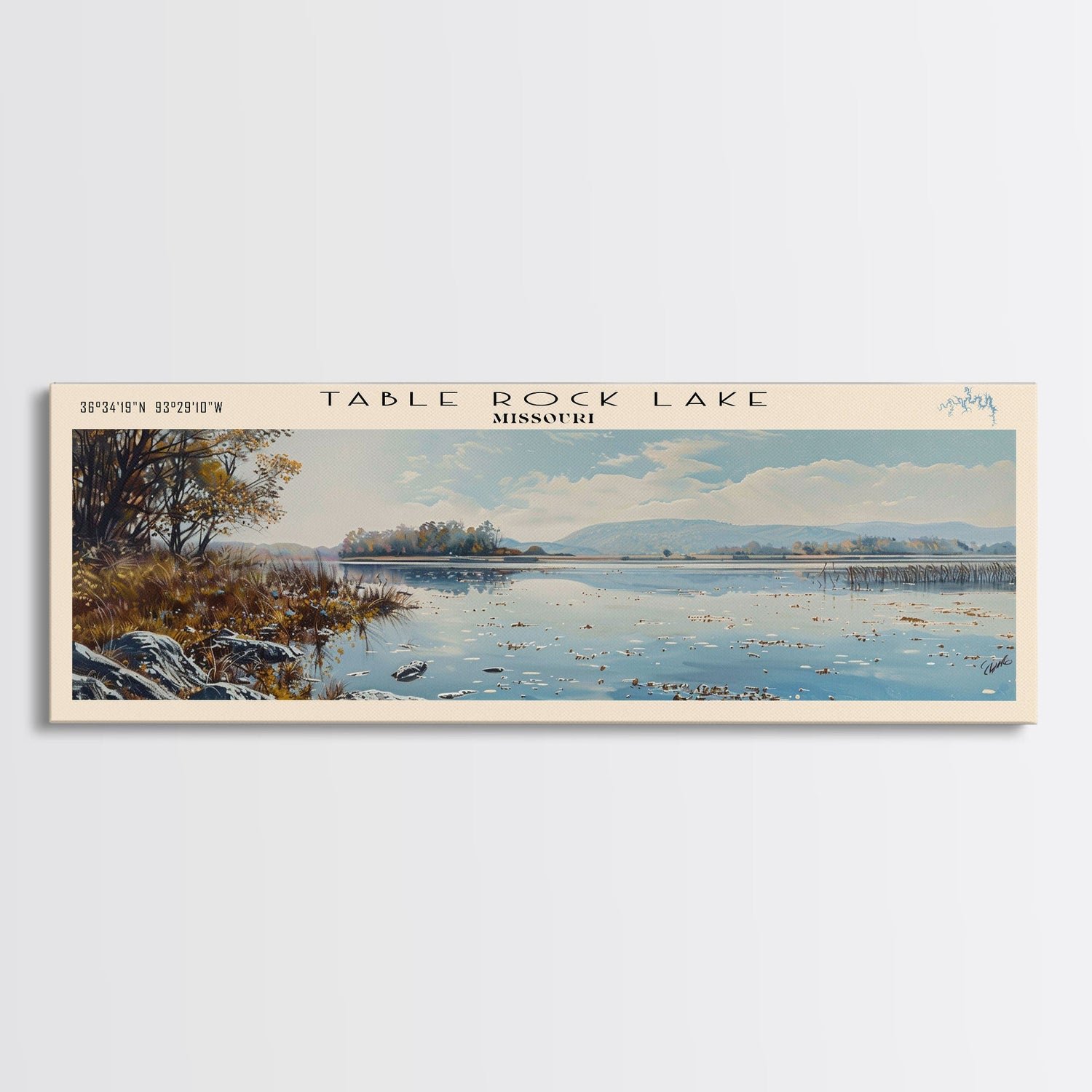 Table Rock Lake Missouri Panoramic Wall Art, Framed Canvas Print, Lake House Decor, Travel Poster, Beautiful Lake Scene, Living Room Decor