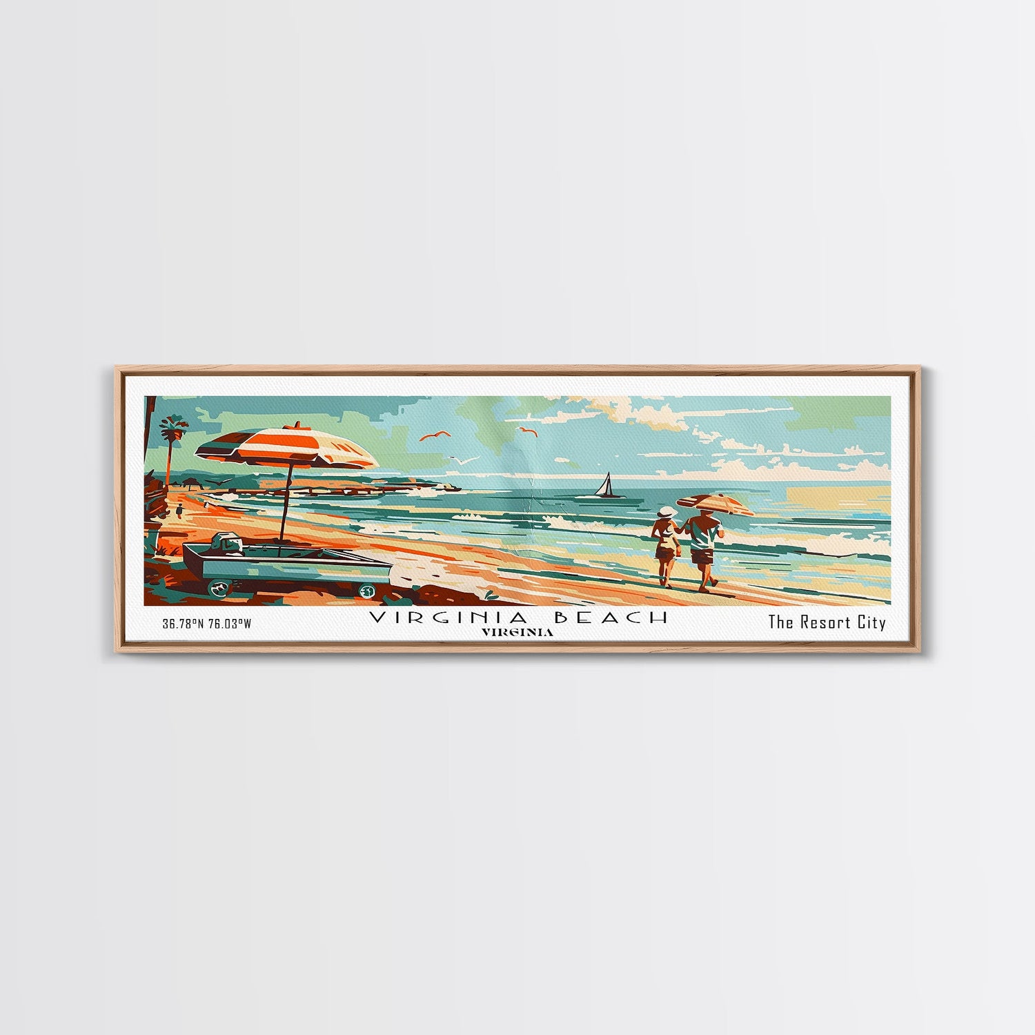 Virginia Beach Virginia Panoramic Wall Art, Mid Century Modern Framed Canvas Print, Retro Pop Art Travel Poster, Living Room and Office Decor