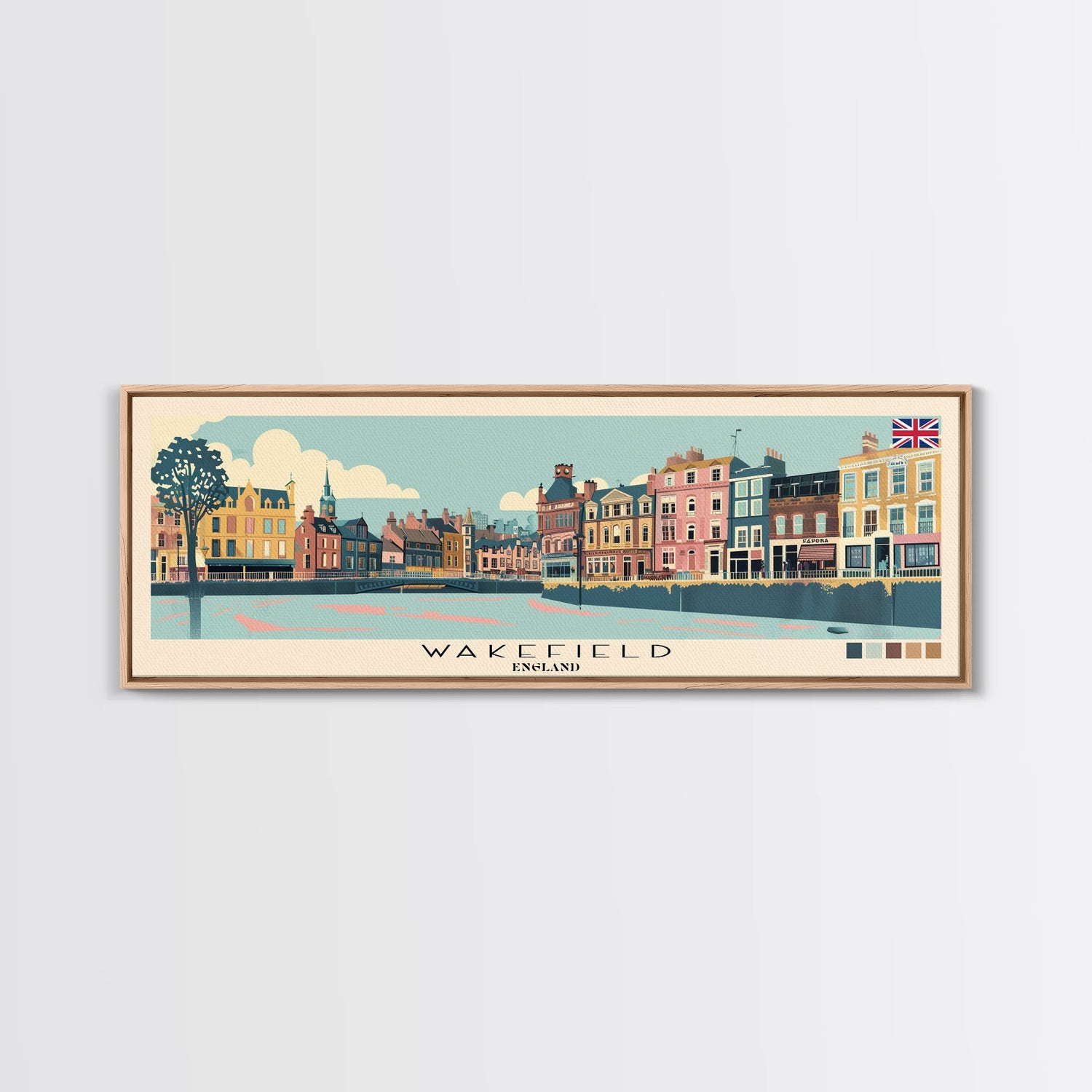 Wakefield, England Panoramic Canvas Print, Wakefield, England Painting, England Art, Wakefield Travel Poster, Travel Art, Vacation Gift