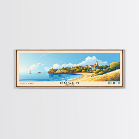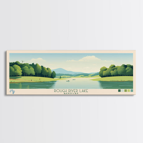 Row boat on a lake canvas print, sunset, watercolor, nature panoramic canvas print