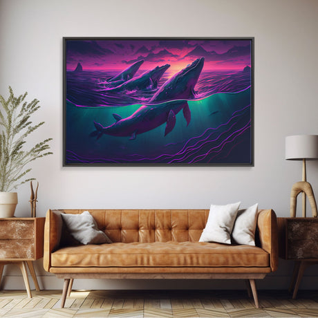 - Up to 60% offNuevArt 3 Blue Whales Breaching at Sunset, vaporwave synthwave ocean art, framed canvas print In stock (3599964 units)From $4999 USD$9999Unit price /Unavailable