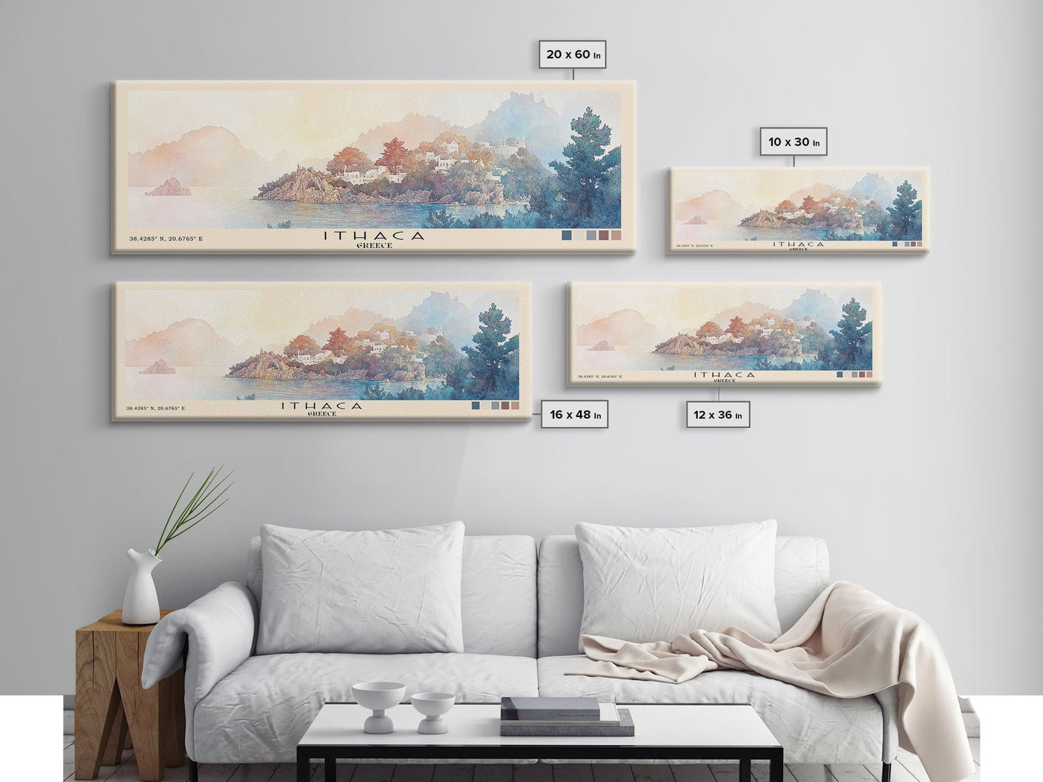 Ithaca, Greece Watercolor Print, Vacation Gift, Greece Wall Art, Beach Painting, Beach Decor, Large Wall Art, Wood Frame Art - 10x30 Inches / Gallery Wrap Canvas - Ready To Hang is backordered and will ship as soon as it is back in stock.