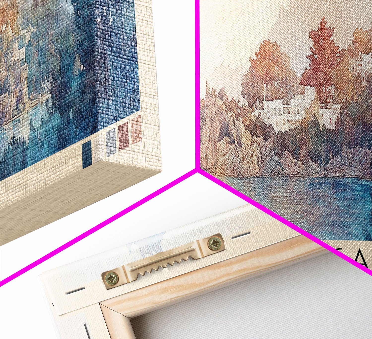 Most of our canvases are made in the USA, with the exception of canvases ordered with the light oak unstained frames, and any large canvases (24x48, 30x60, 16x48 and 20x60) ordered WITH a frame. These are temporarily made in and shipped from Europe, while we try to find a more consistent supplier in the USA.