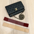 The Wallet On Chain shaper will work with most classic and seasonal Wallet On Chain bags that measure 7.4 inches long and 1.8 inches wide. The shaper is smaller than this so that it can fit inside.