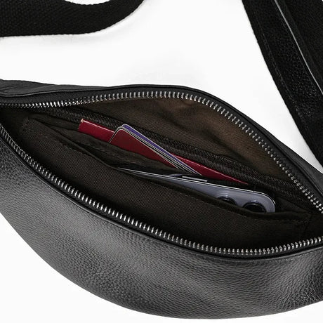 Sigrid Smooth Black Leather Waist Bag | Smooth Black Leather Fanny Pack