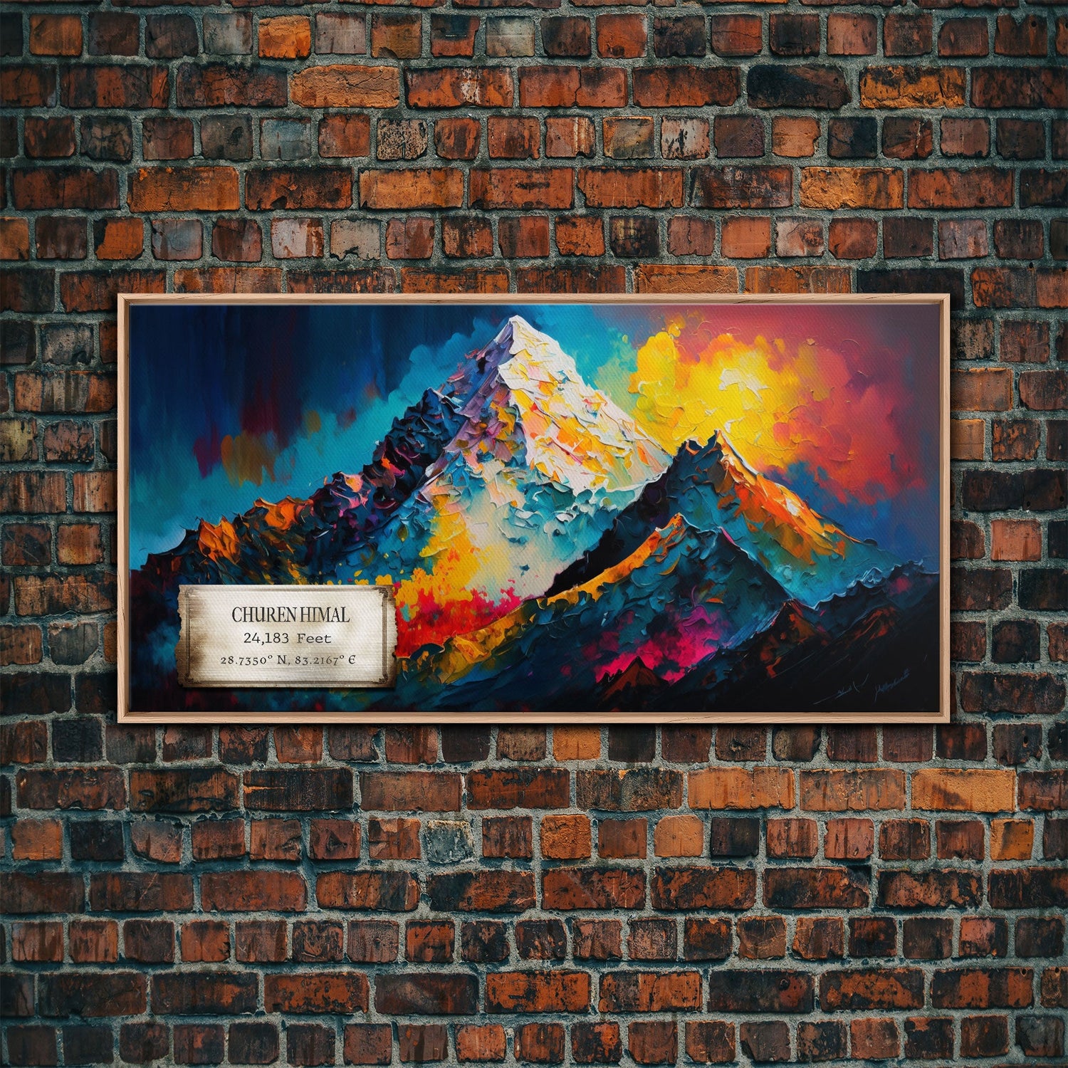 Churen Himal, Travel Poster Wall Art, Framed Canvas Print, Mountain Art, Mountain Landscape Painting - 10x20 Inches / Gallery Wrap Canvas - Ready To Hang is backordered and will ship as soon as it is back in stock.