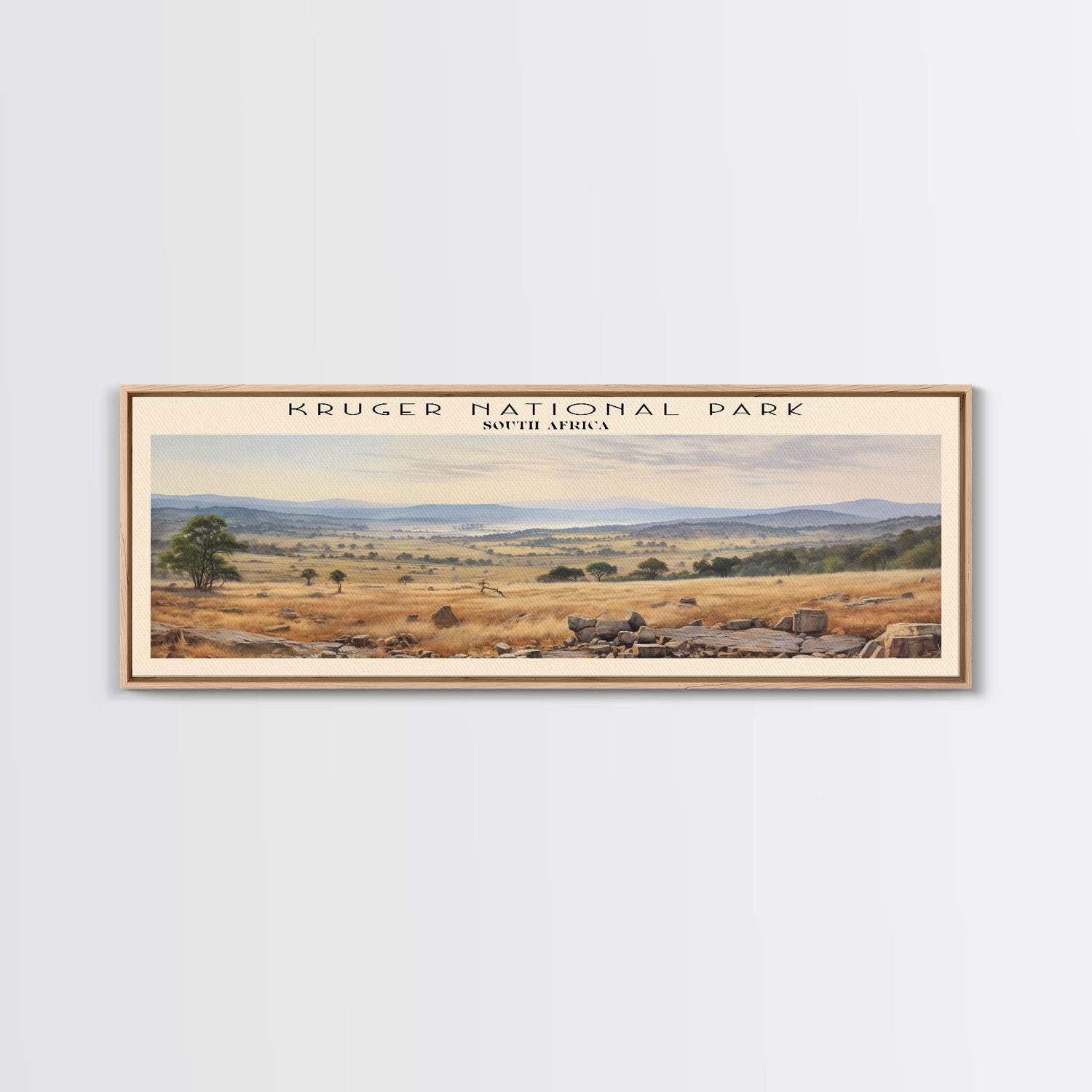 Kruger National Park Travel Print Wall Art, Travel Poster Print, Retro Style COUNTRY Home Decor, Wall Hanging, Travel Gift Idea, Unique Metal Art - 10x30 Inches / Gallery Wrap Canvas - Ready To Hang is backordered and will ship as soon as it is back in stock.