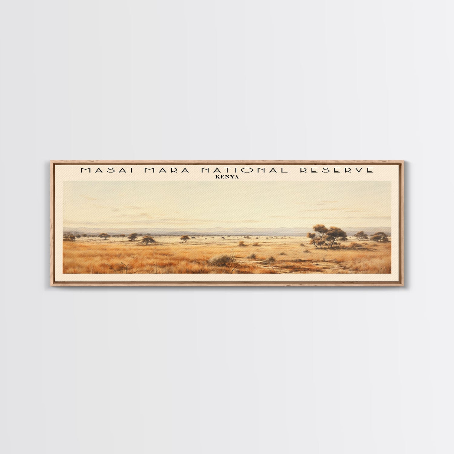 Masai Mara National Reserve Travel Print Wall Art, Travel Poster Print, Retro Style COUNTRY Home Decor, Wall Hanging, Travel Gift Idea, Unique Metal Art - 10x30 Inches / Gallery Wrap Canvas - Ready To Hang is backordered and will ship as soon as it is back in stock.