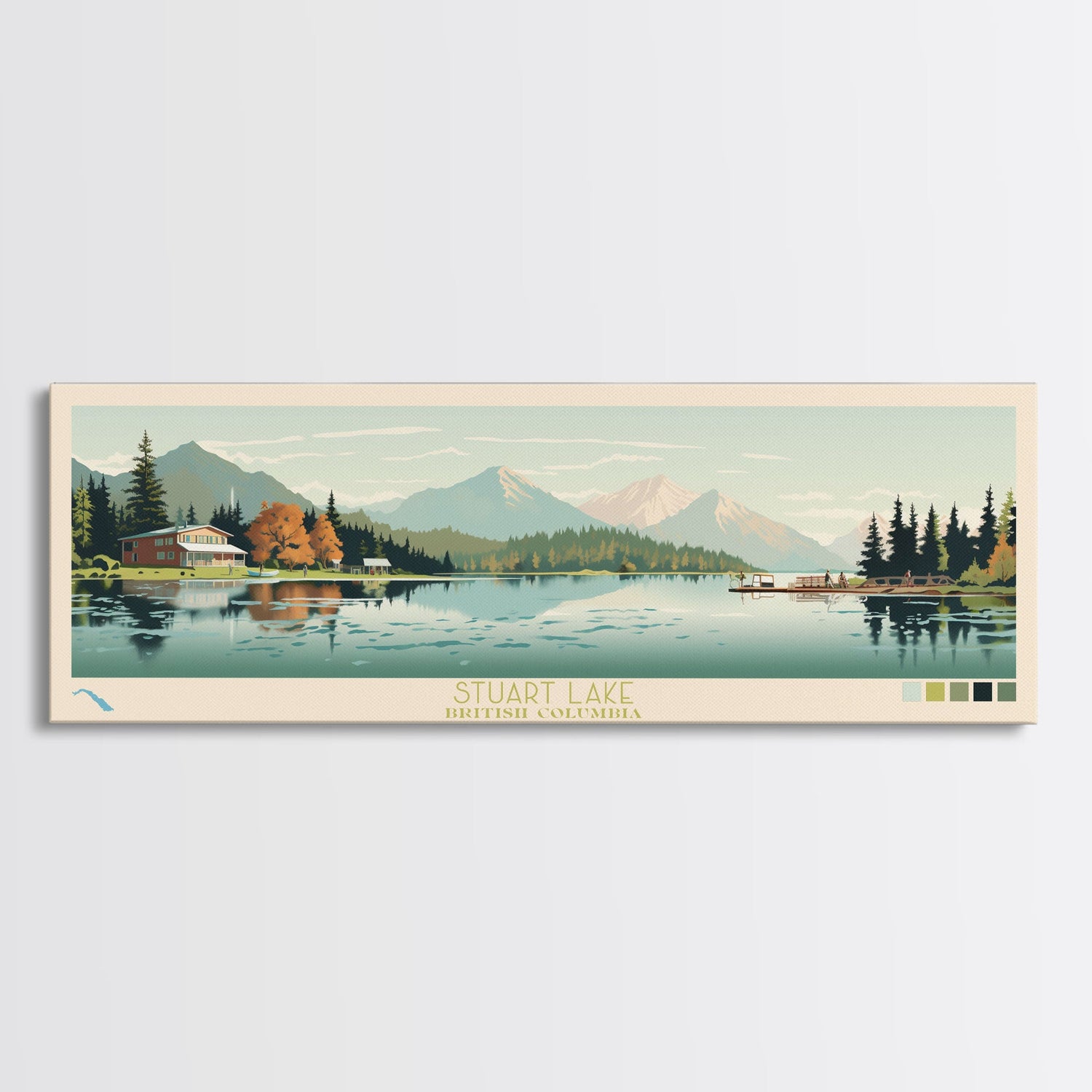 Stuart Lake, British Columbia Framed Canvas Print, Lake House Decor, Midcentury Modern Art, Pop Art, Travel Poster, Bedroom Wall Art - 10x30 Inches / Gallery Wrap Canvas - Ready To Hang is backordered and will ship as soon as it is back in stock.