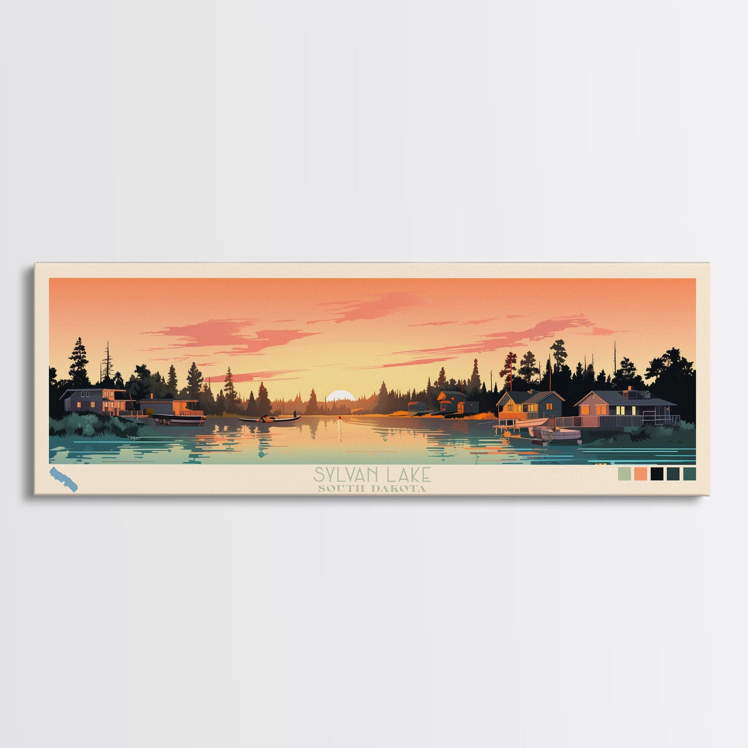 Sylvan Lake, South Dakota Framed Canvas Print, Lake House Art, Midcentury Modern Decor, Pop Art, Travel Poster, Living Room Wall Art - 10x30 Inches / Gallery Wrap Canvas - Ready To Hang is backordered and will ship as soon as it is back in stock.