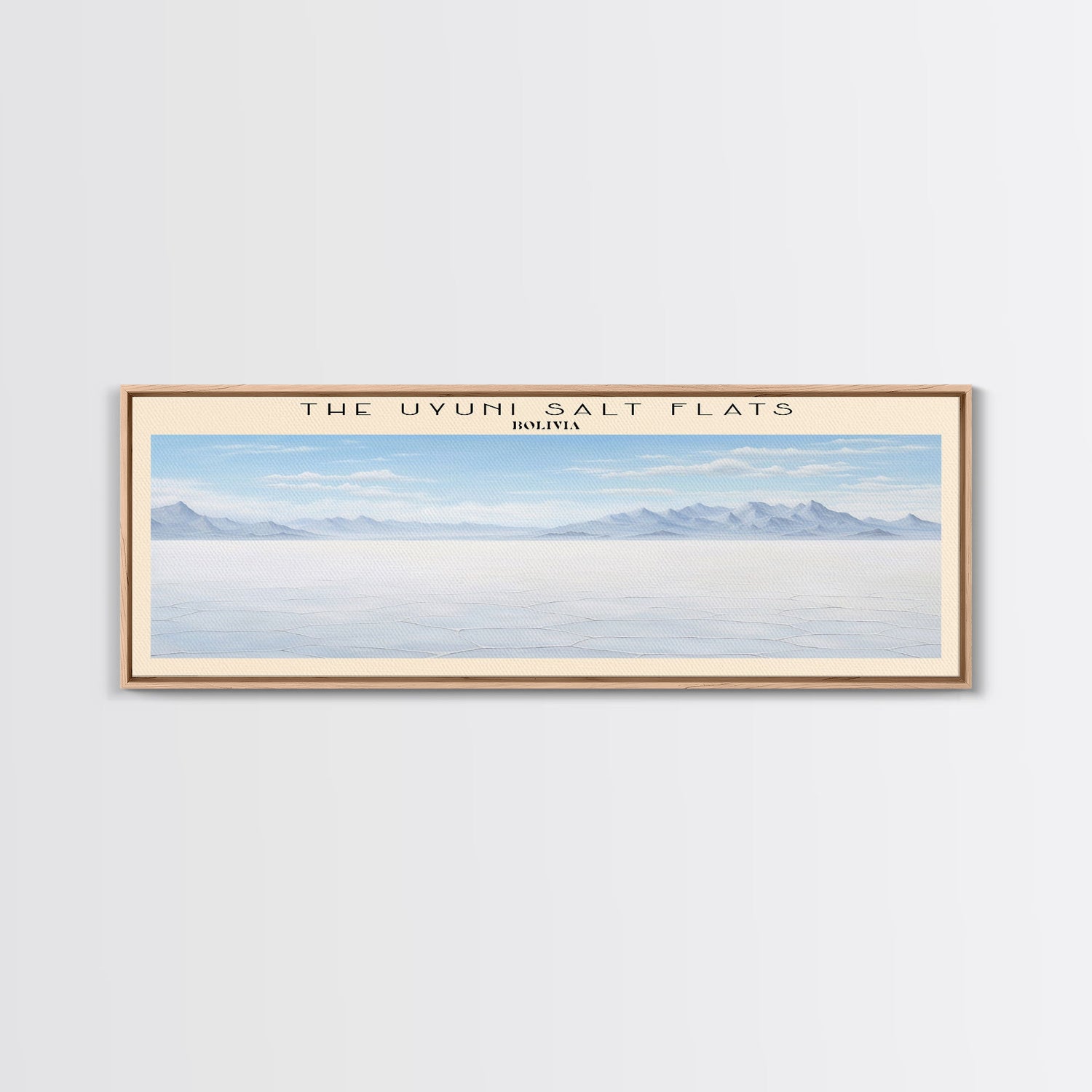 The Uyuni Salt Flats COUNTRY | Framed Travel Poster Canvas Print | Trendy Wall Art | Watercolor Painting | Living Room Art | Unique Art - 10x30 Inches / Gallery Wrap Canvas - Ready To Hang is backordered and will ship as soon as it is back in stock.