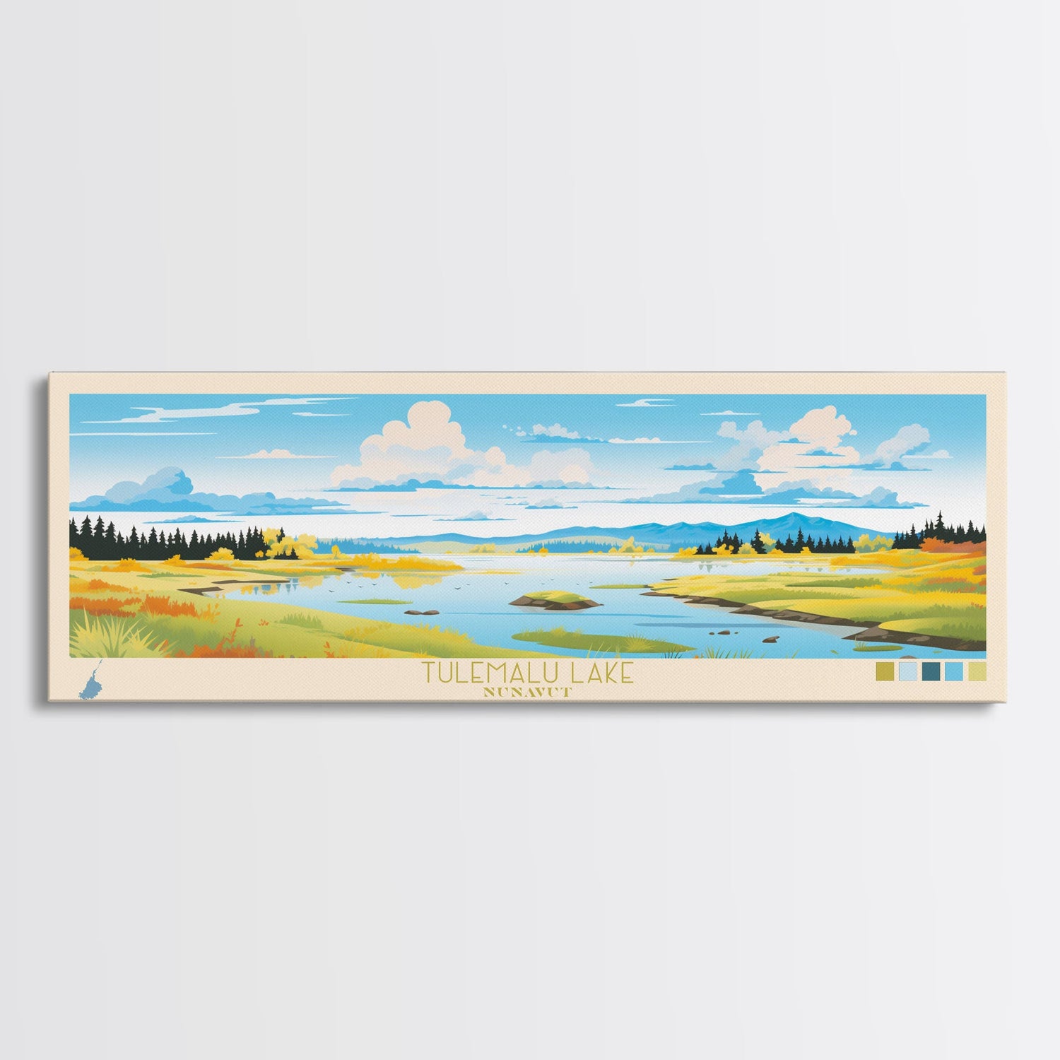 Tulemalu Lake, Nunavut Framed Canvas Print, Lake House Decor, Midcentury Modern Art, Pop Art, Travel Poster, Living Room Wall Art - 10x30 Inches / Gallery Wrap Canvas - Ready To Hang is backordered and will ship as soon as it is back in stock.