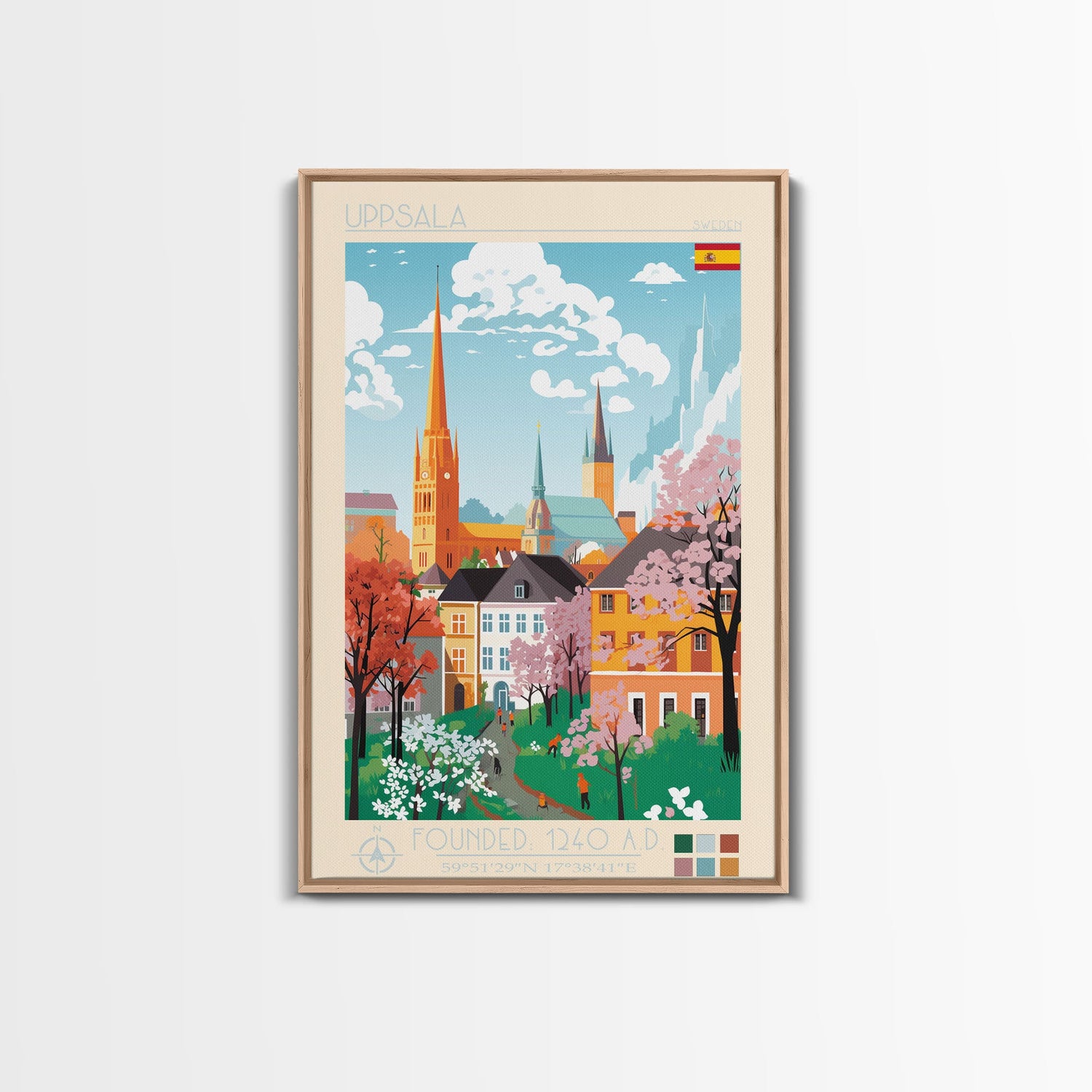 Uppsala Sweden Travel Poster Framed Canvas Print, Midcentury Modern Art, Pop Art Wall Decor, Living Room Art, Home Decoration