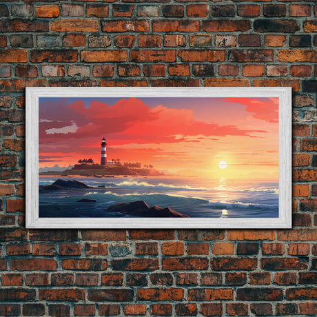 Lighthouse and the Storm, Framed Canvas Print, Unique Halloween Wall Art, Nautical Decor