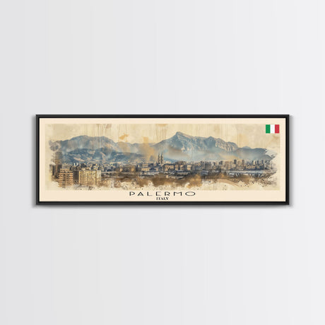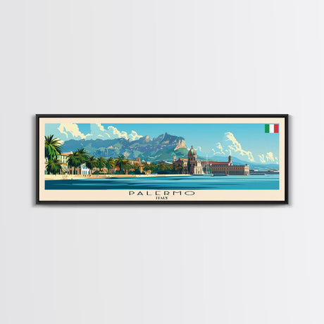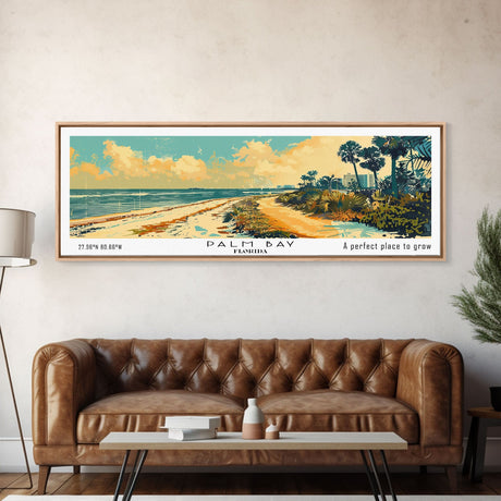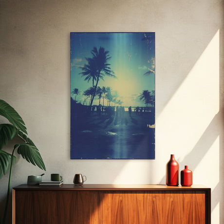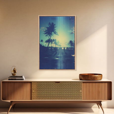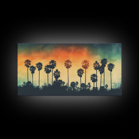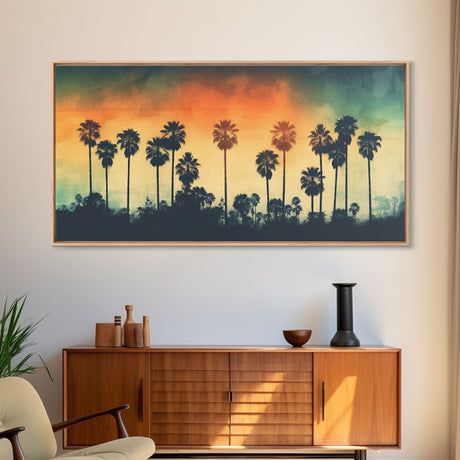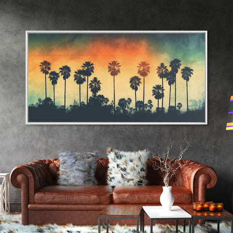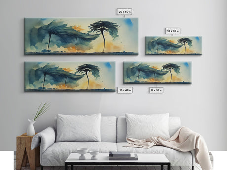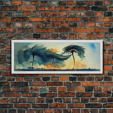Palm Tree In A Hurricane, Extra Large Wall Art, Framed Panoramic Canvas Print, Framed Wall Art