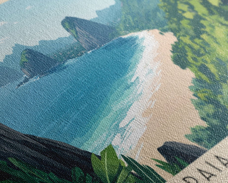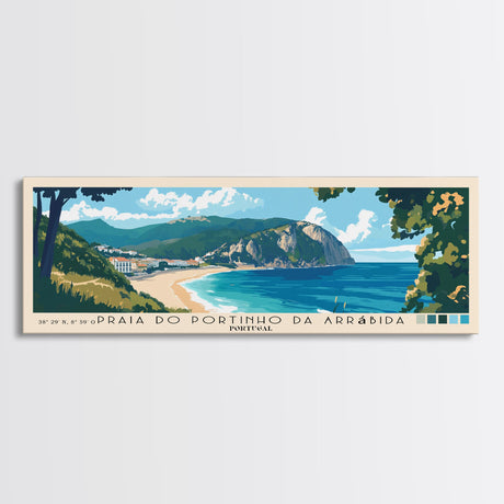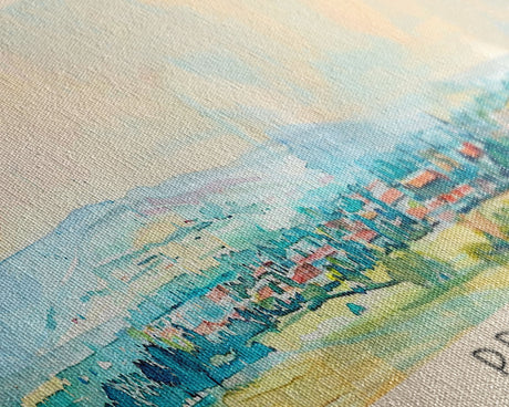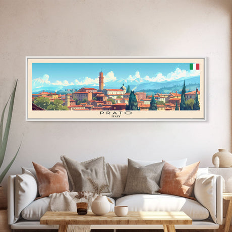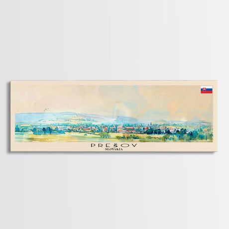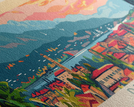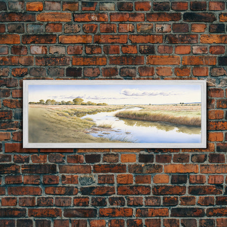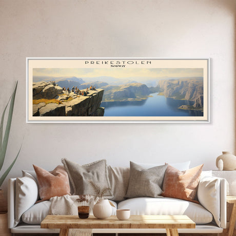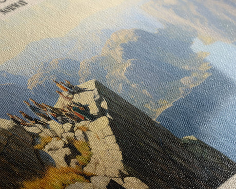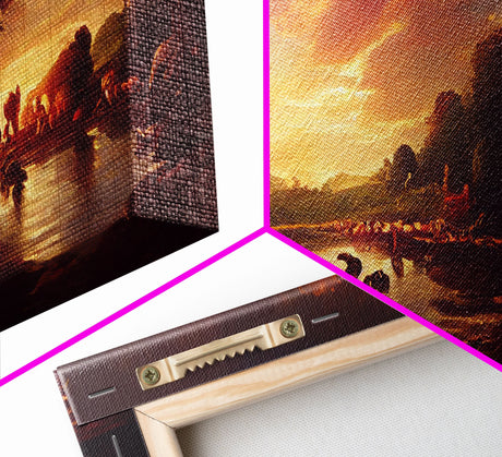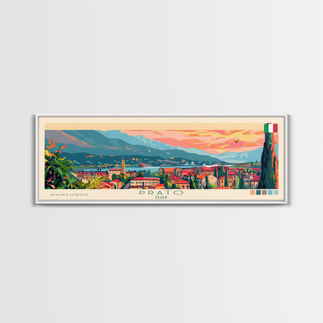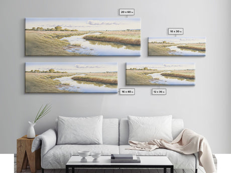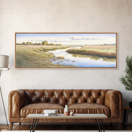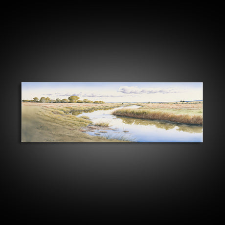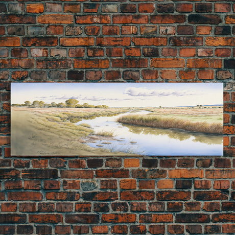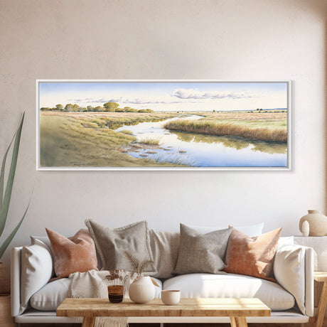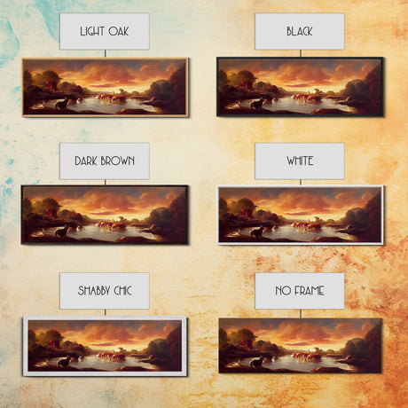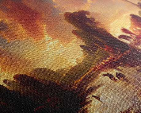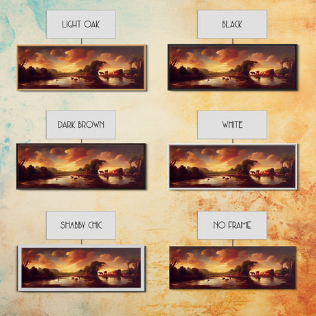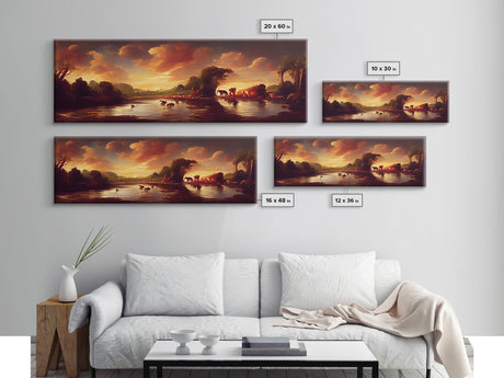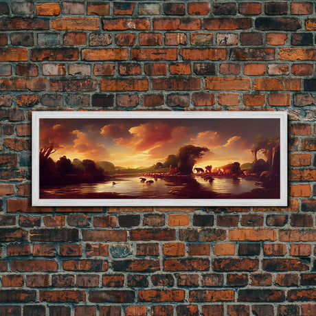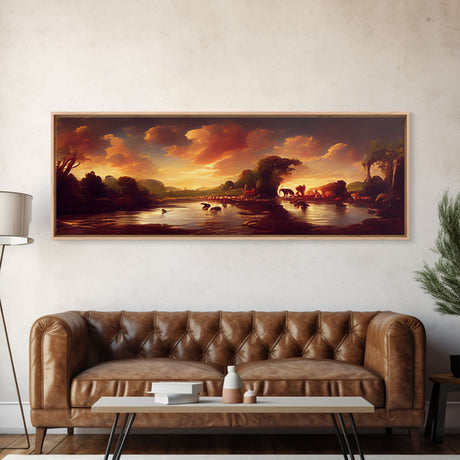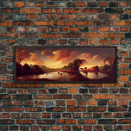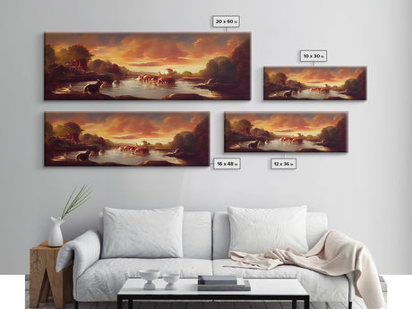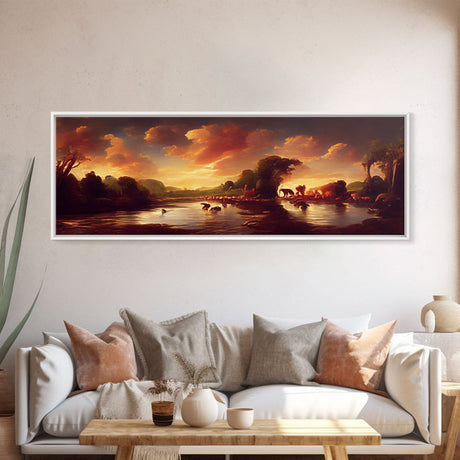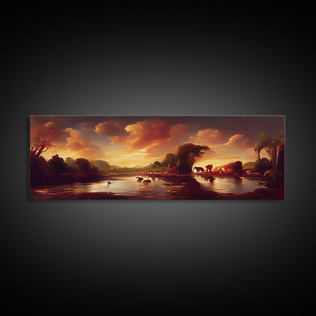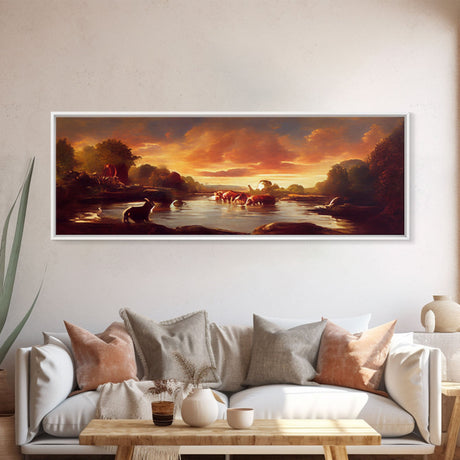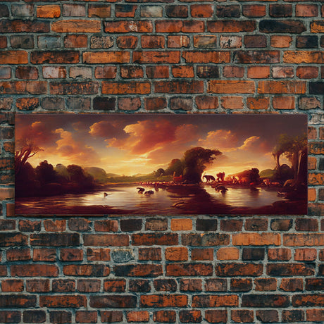 Prehistoric Abstract Landscape Art, Ready To Hang Canvas Print, Panoramic Art, Dinosaurs At Sunset