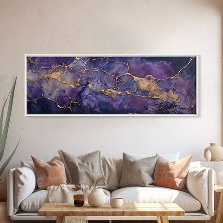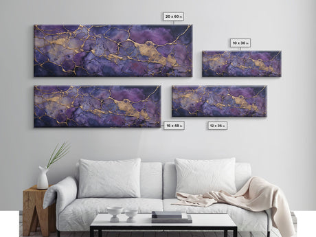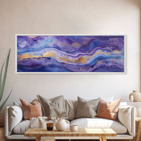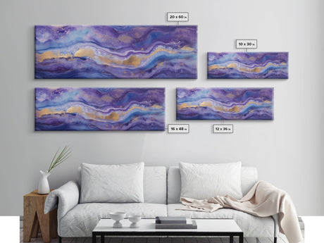 Purple Lavender Fields, Abstract Watercolor Art, Ready To Hang Canvas Print, Framed Wall Art