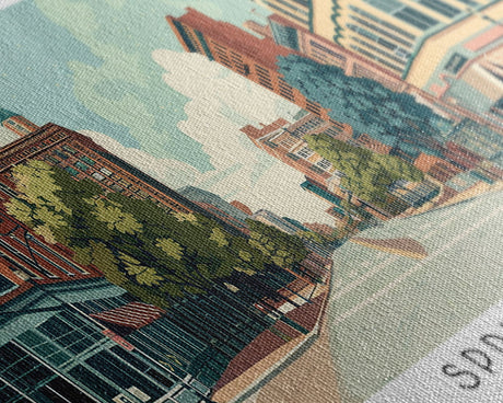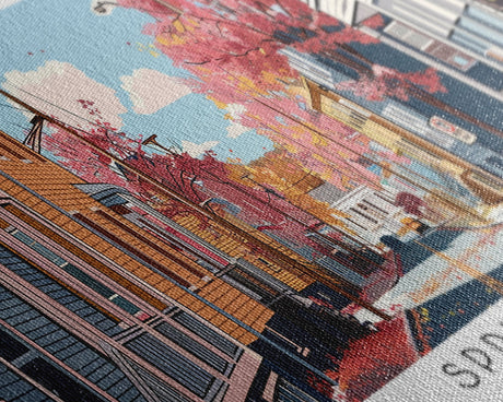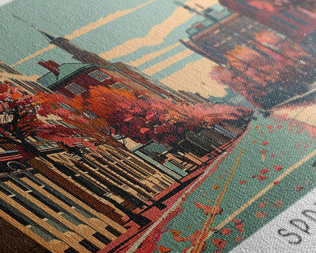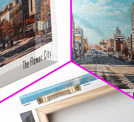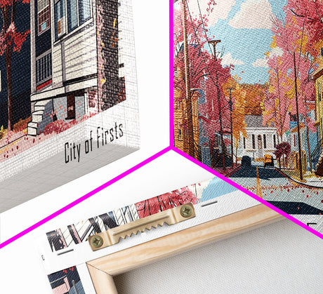 Spring Witch and Her Slice Of Pizza, Framed Canvas Print, Cute / Funny Halloween Art