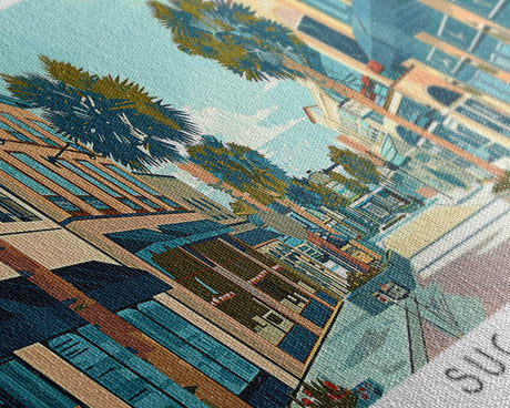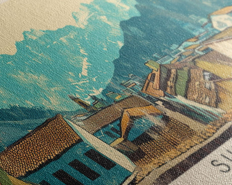 Summer Witch and Her Slice Of Pizza, Framed Canvas Print, Cute / Funny Halloween Art