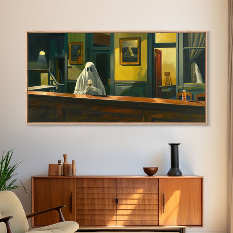 The Haunted Diner, Ghost Having an ice cream cone, Funny Halloween Art Framed Canvas Print