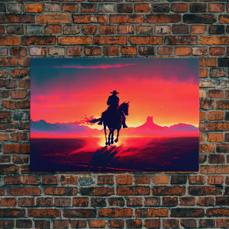 - Up to 60% offNuevArt A cowboy and his horse at sunset, framed canvas art, canvas print, western decor, farmhouse art In stock (3599964 units)From $4999 USD$9999Unit price /Unavailable