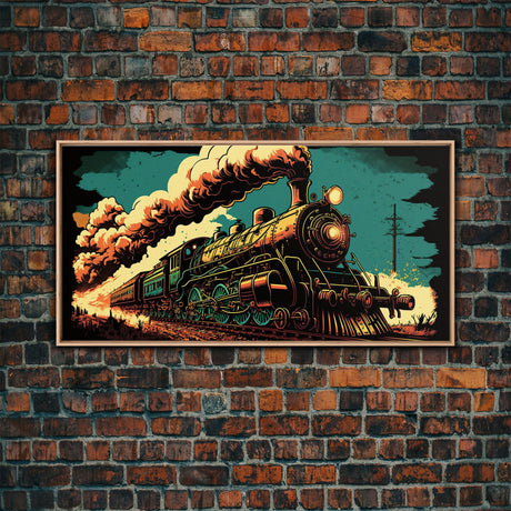 Pop Art Steam Train, Framed Canvas Print, Cool Wild West Decor, Western Art, Framed Colorful Pop Art