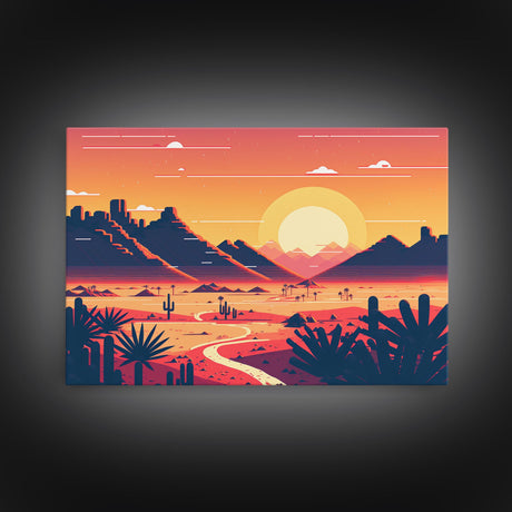 Psychedelic Desert Decor, Framed Canvas Print, Colorful Western Art, Midwest Decor, Framed Art