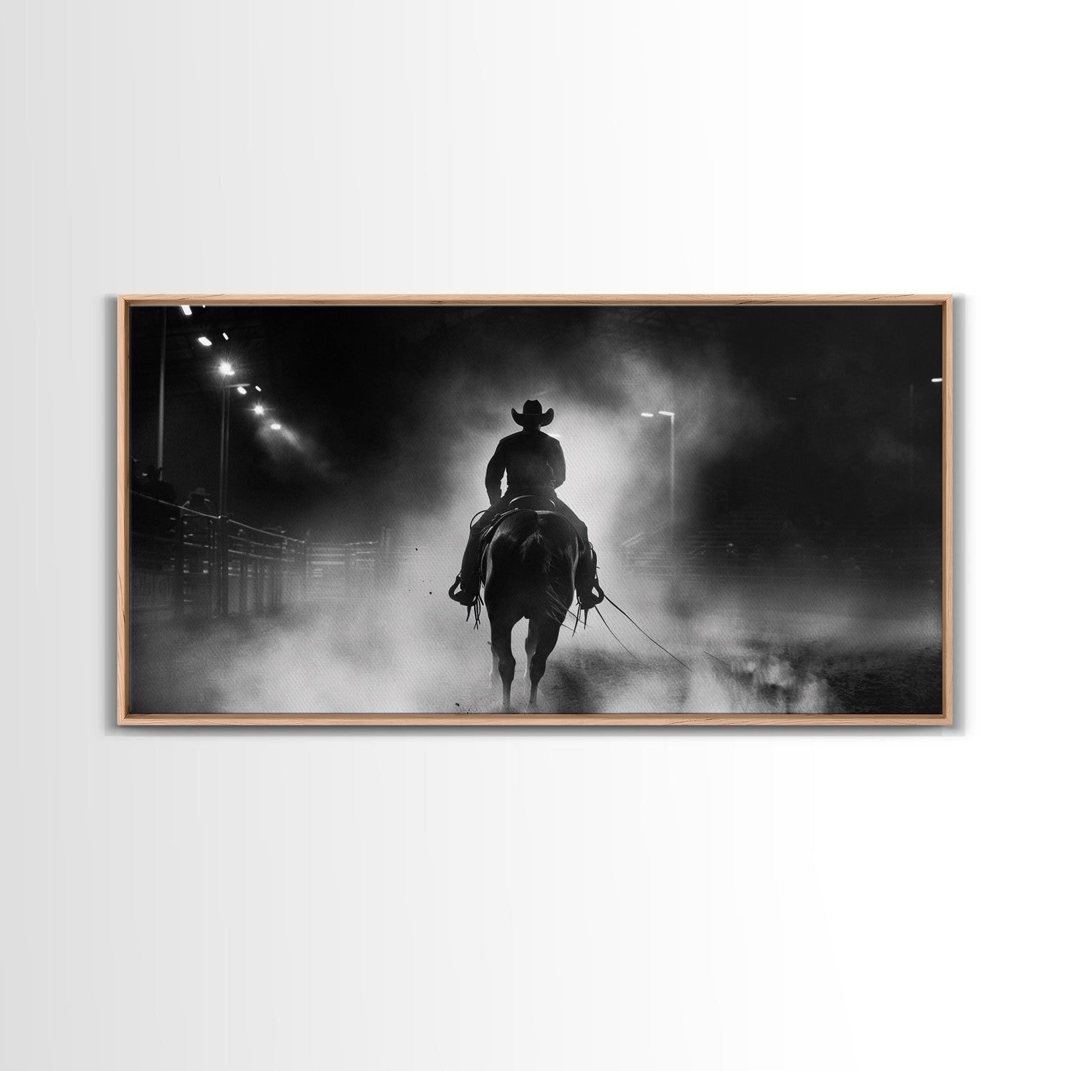 Mysterious Cowboy Riding Through Smoke at Night, Framed Canvas Print for Living Room, Ideal Western Bedroom Decor, Wall Art - 10x20 Inches / Gallery Wrap Canvas - Ready To Hang is backordered and will ship as soon as it is back in stock.