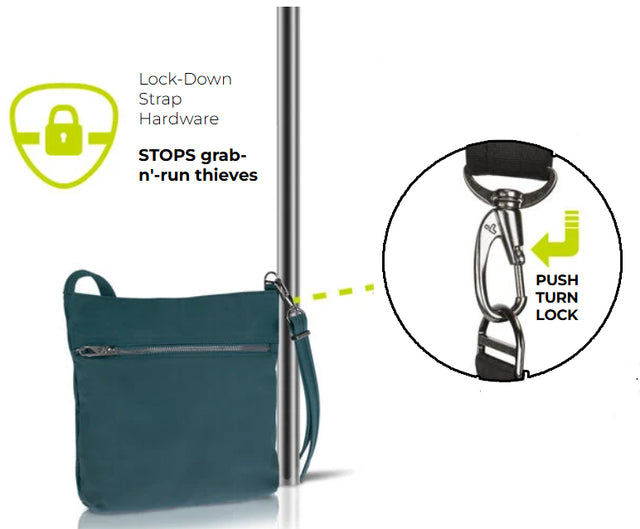 STOPS thieves from slashing strap through and running off with your bag, identity and valuables.